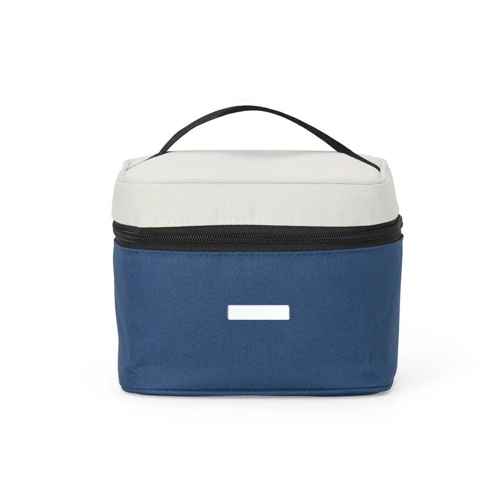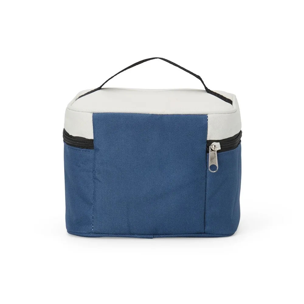 Bolsa térmica de nylon 5 litros. Possui bolso telado e acompanha plaquinha metálica.