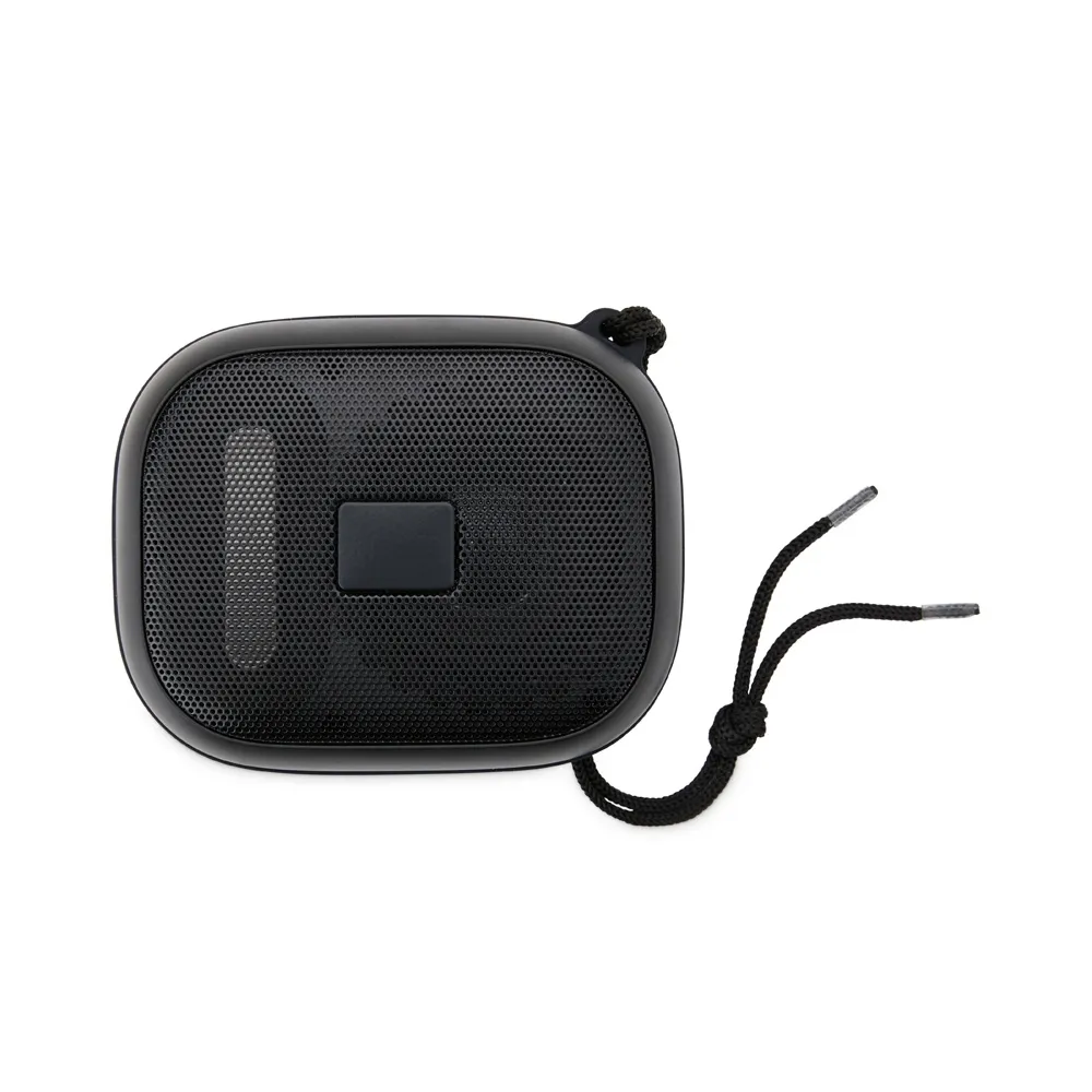 Caixa de som portátil com estrutura em plástico e metal. Possui conexão Bluetooth 5.3, rádio FM e compatibilidade com a tecnologia TWS, o que permite sincronizar duas caixas de som ao mesmo tempo. Conta ainda com painel de botões emborrachado, entrada para cartão TF (microSD) e portas P2 e USB-C, esta última utilizada para recarga da caixa. Acompanha cordão de nylon para transporte, cabo P2 e USB-C.