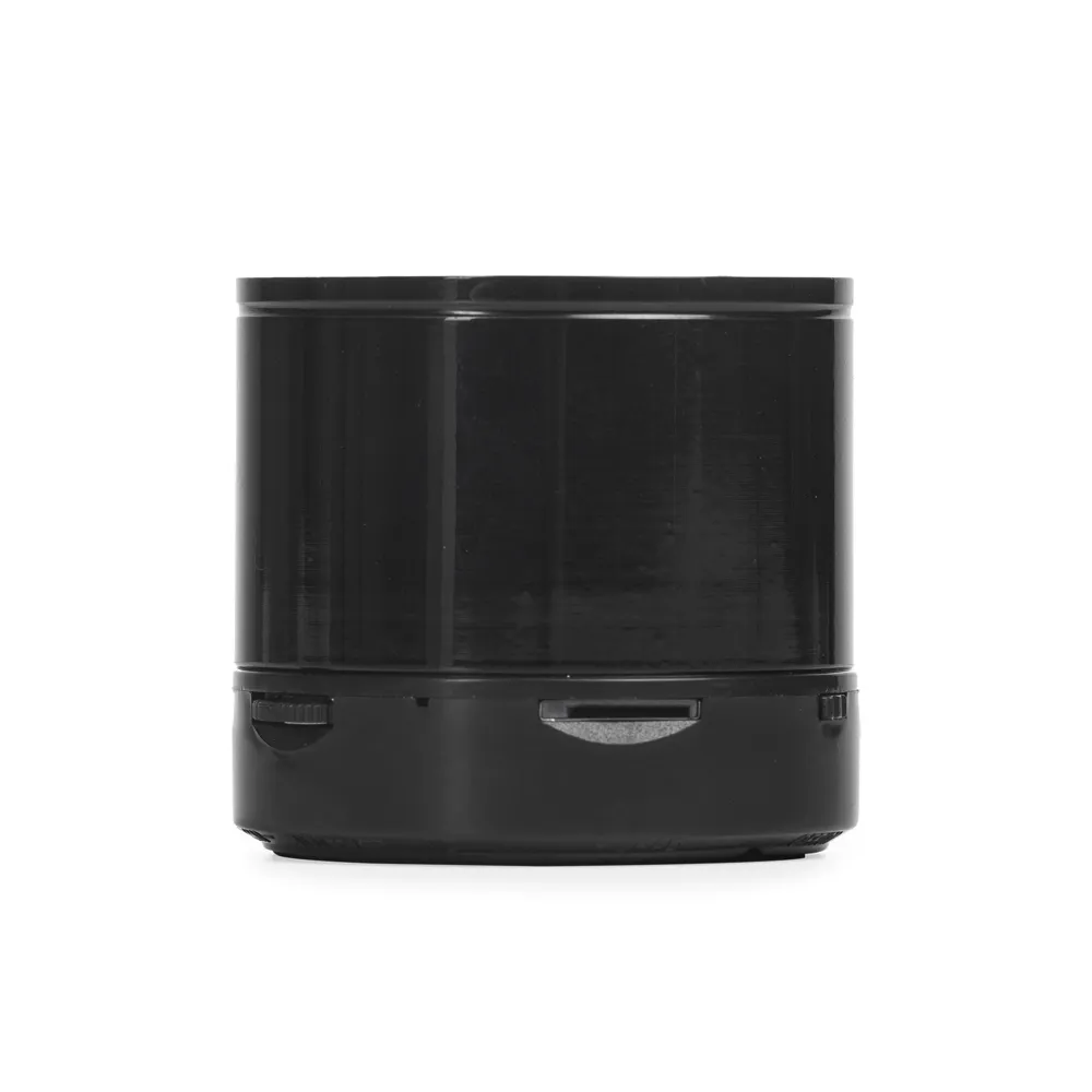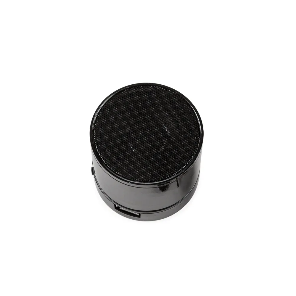 Caixa de som multimídia com Bluetooth e rádio FM. Feita em metal com detalhes plásticos, possui: botão Off/On; O botão de rotação tem algumas funções: >|| ao ser pressionado serve como Play/Pause, quando segurado ele alterna entre os modos de reprodução; ao rotacionar para esquerda avança a faixa e quando segurado aumenta o volume; entrada para cartão MicroSD; Microfone; Entrada DC 5V/AUX além de utilizada para conectar o cabo para carregamento, necessário plugar o cabo nesta entrada para conseguir a sintonização no modo rádio(quando estiver neste modo, aperte o botão >|| para o início da sintonização). Falante de 3W. Acompanha cabo USB.