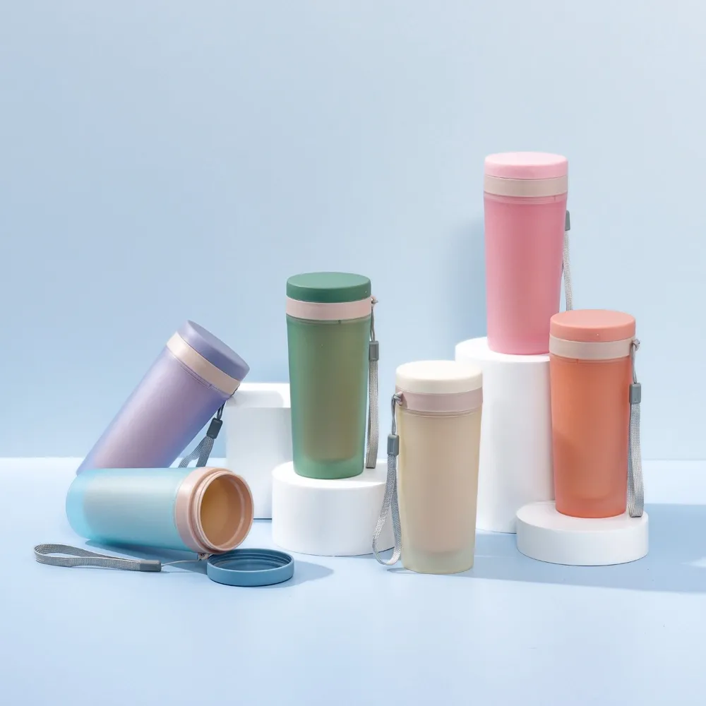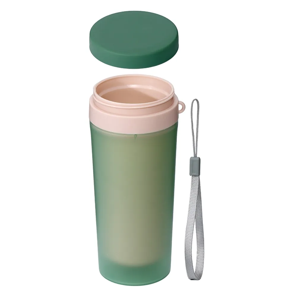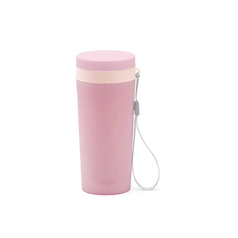 Copo isotérmico de plástico polipropileno com capacidade para 300ml livre BPA. Acompanha tampa rosqueável e alça de nylon para transporte.