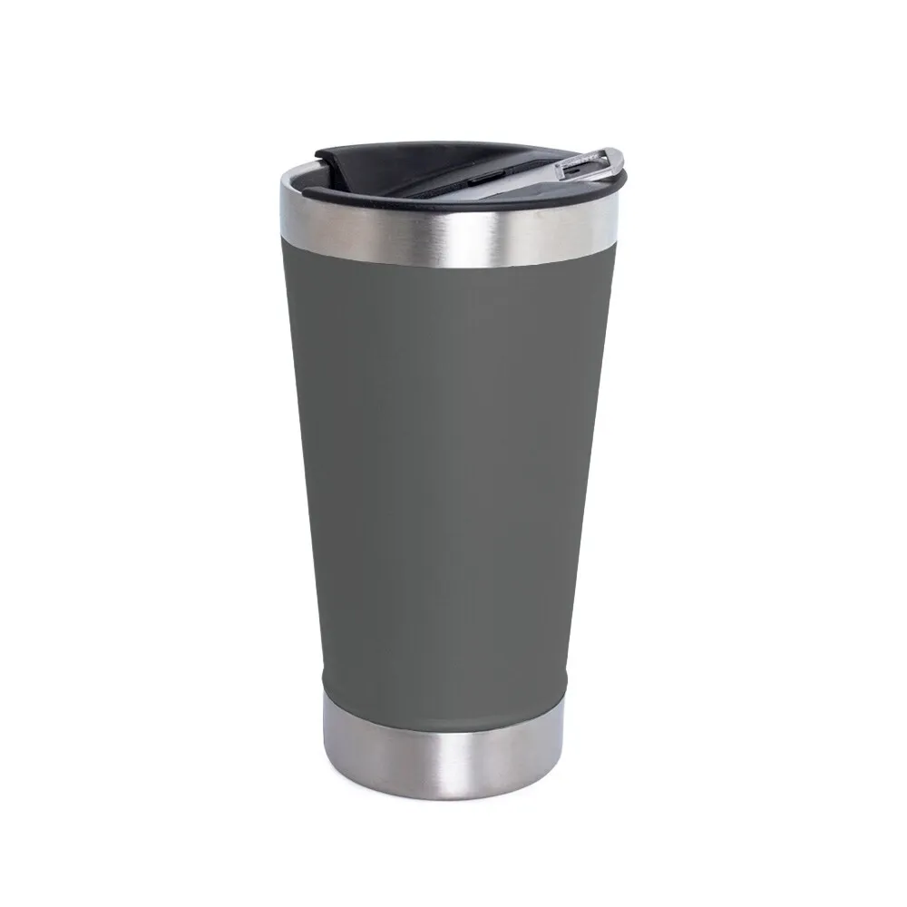 Copo térmico de inox com acabamento liso e capacidade 500ml, material livre de BPA. Contém tampa com abridor.