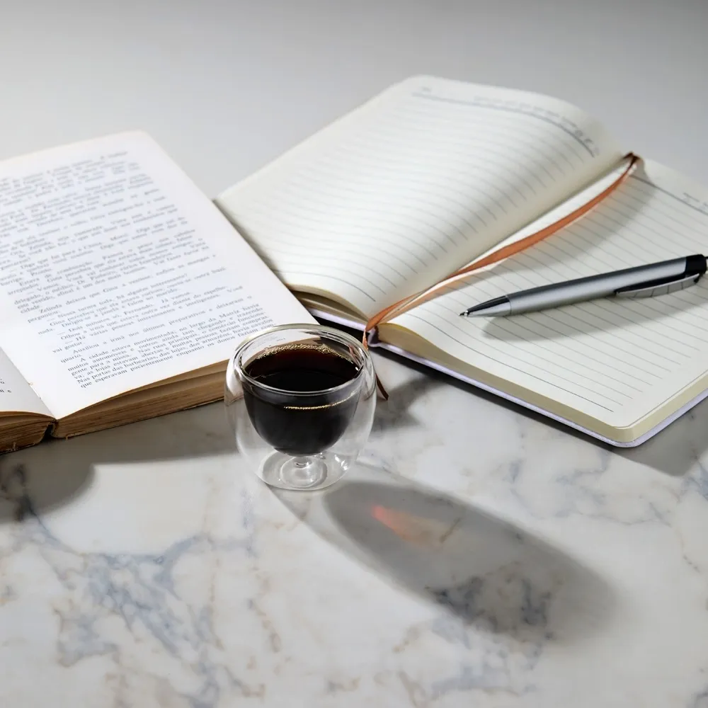 Copo de vidro borossilicato parede dupla com capacidade para 80ml.
