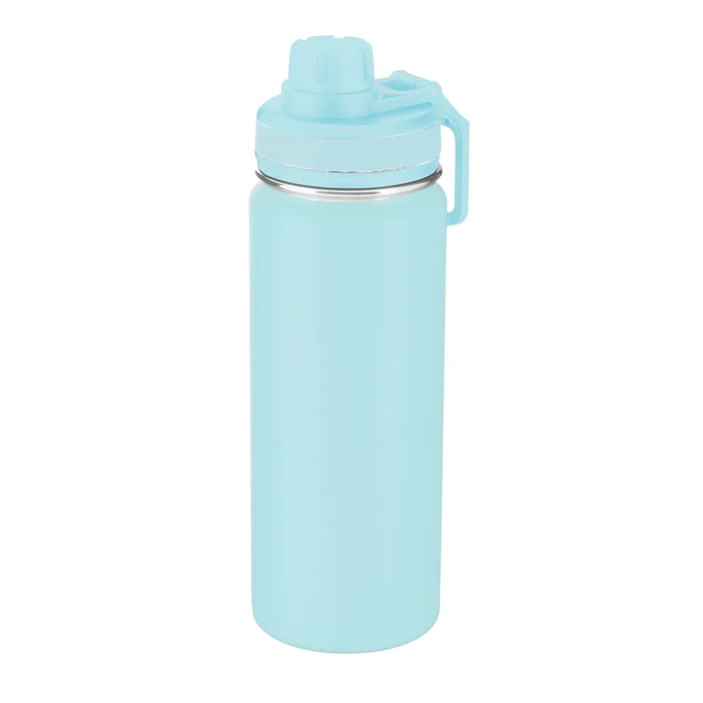 Garrafa em inox com capacidade de até 780ml. Tampa rosqueável, alça de plástico e anel de silicone para vedação. Pintura eletrostática.