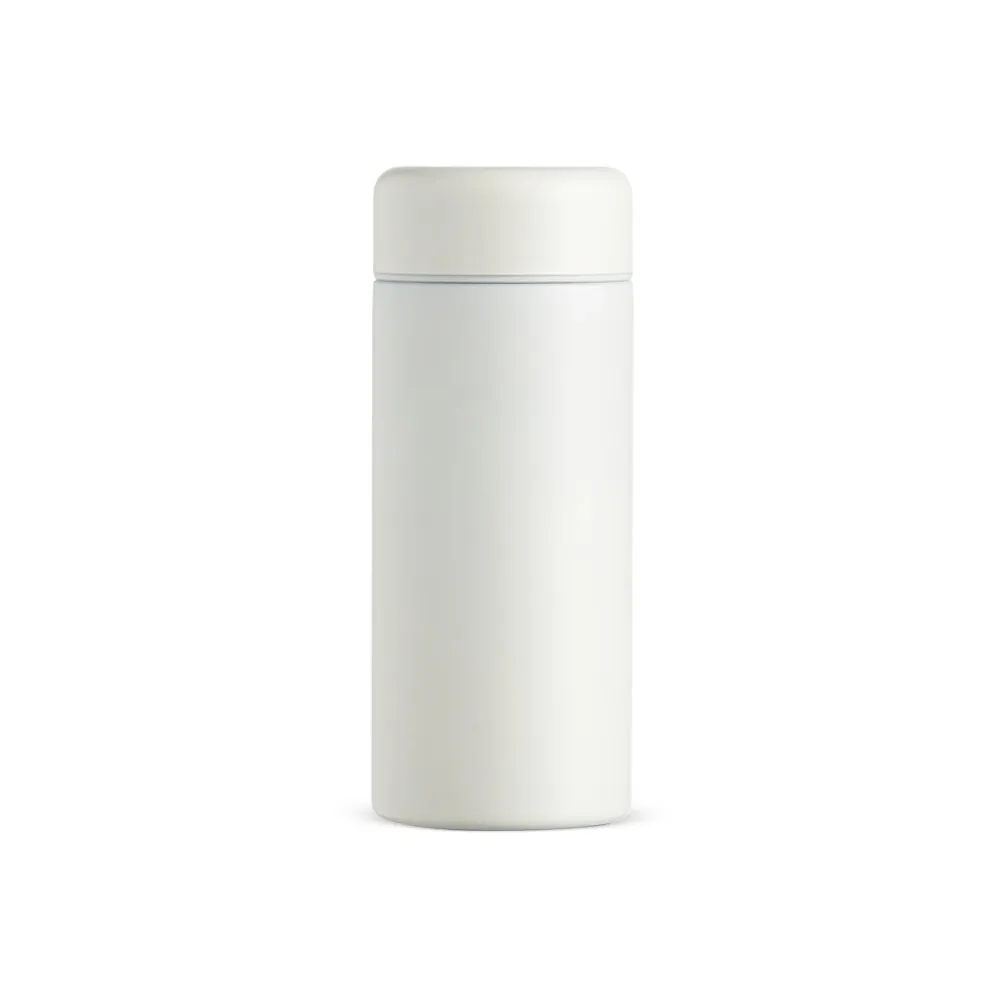 Garrafa térmica inox de parede dupla com capacidade de 200ml.