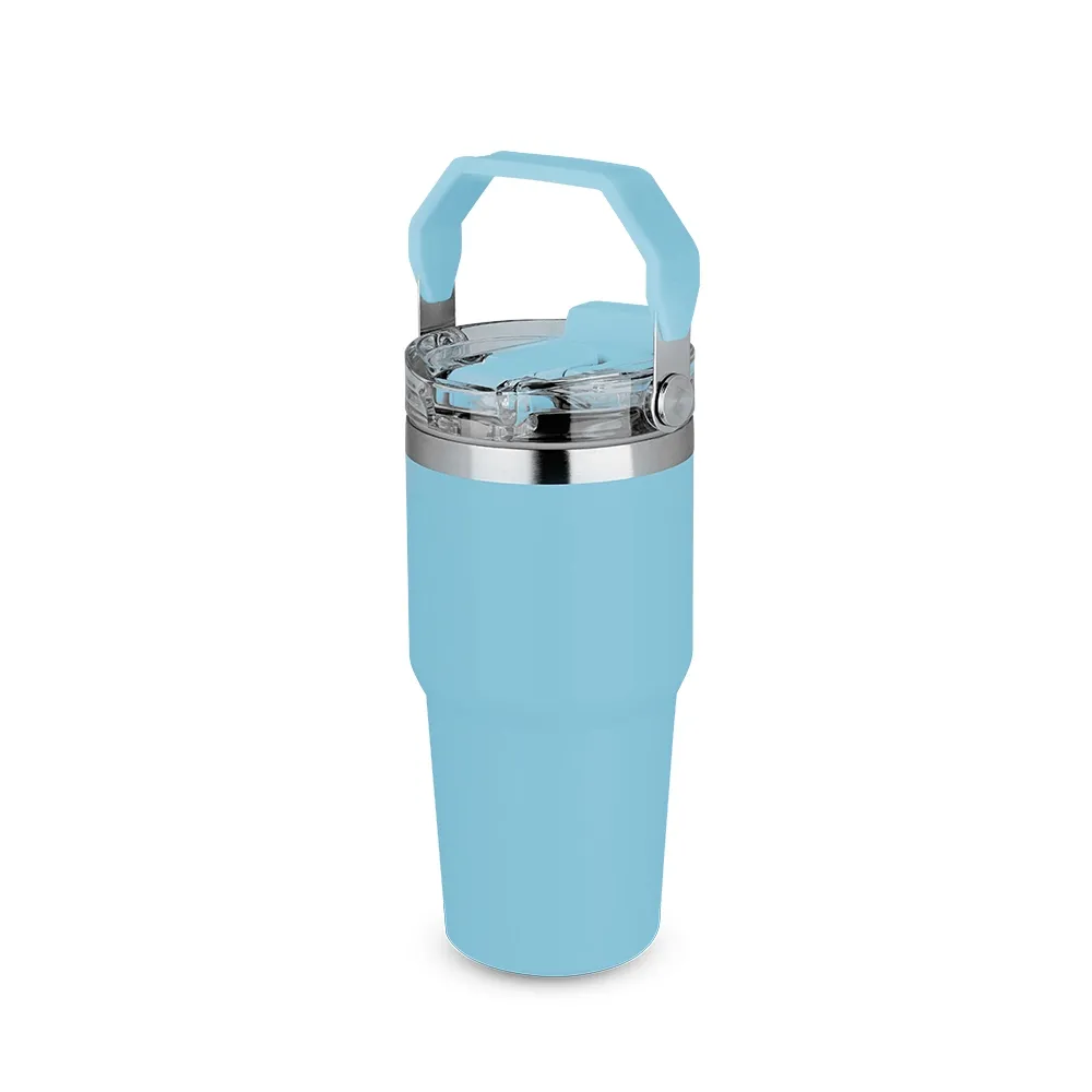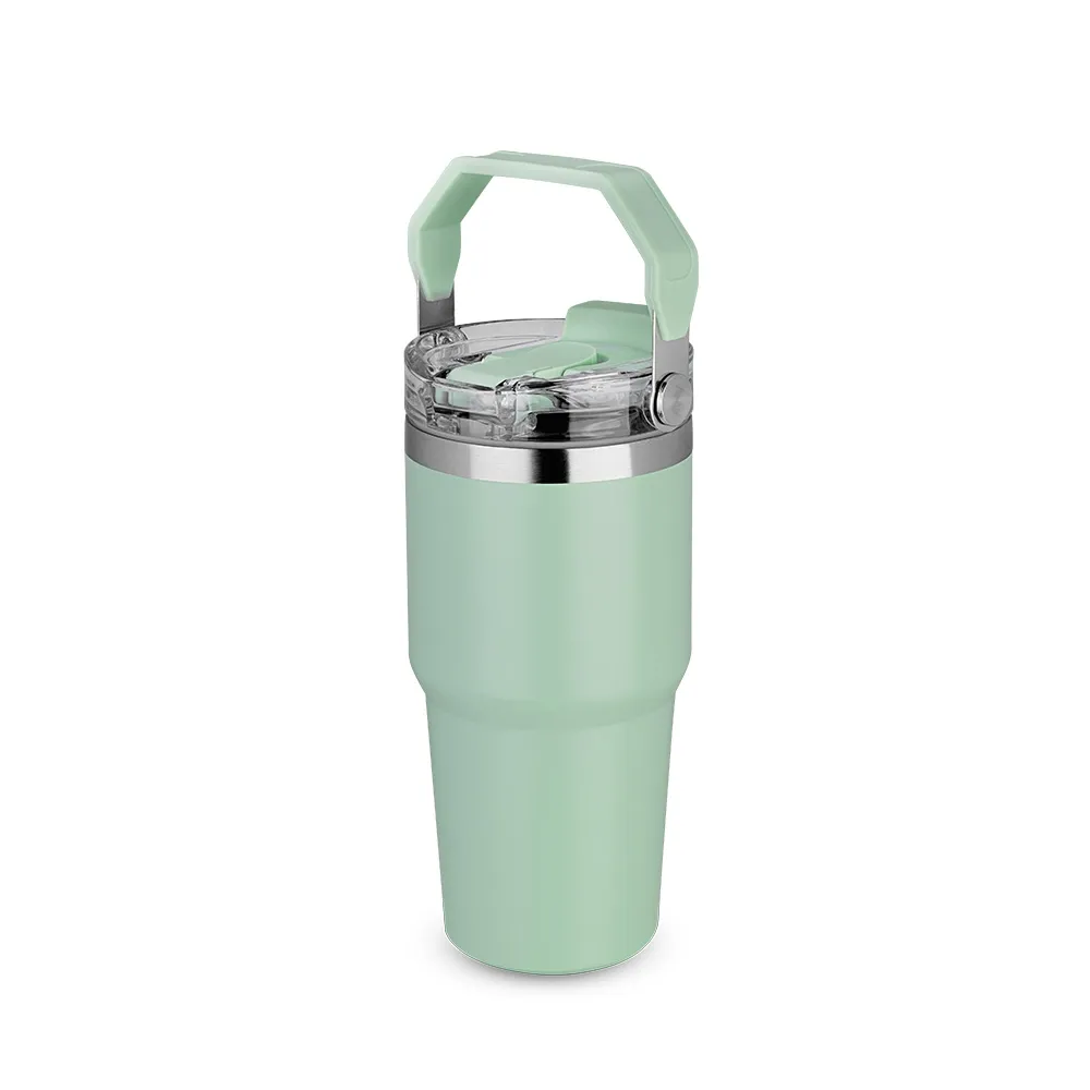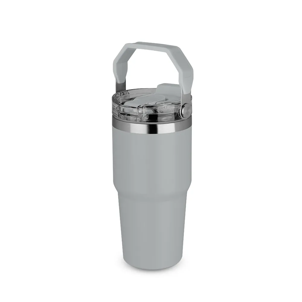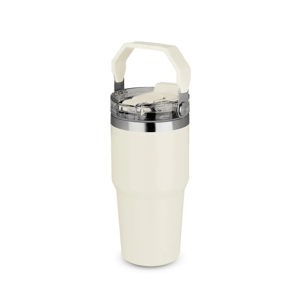 Garrafa térmica em aço inox com parede dupla isolada a vácuo, com capacidade de até 650ml e com parede externa com pintura a pó. Tampa rosqueável com anel de silicone para vedação. Alça de transporte em plástico. Permite-se hidratar por canudo ou bico.\r\n\r\nConserva líquidos : ☀️8 horas ❄️12 horas