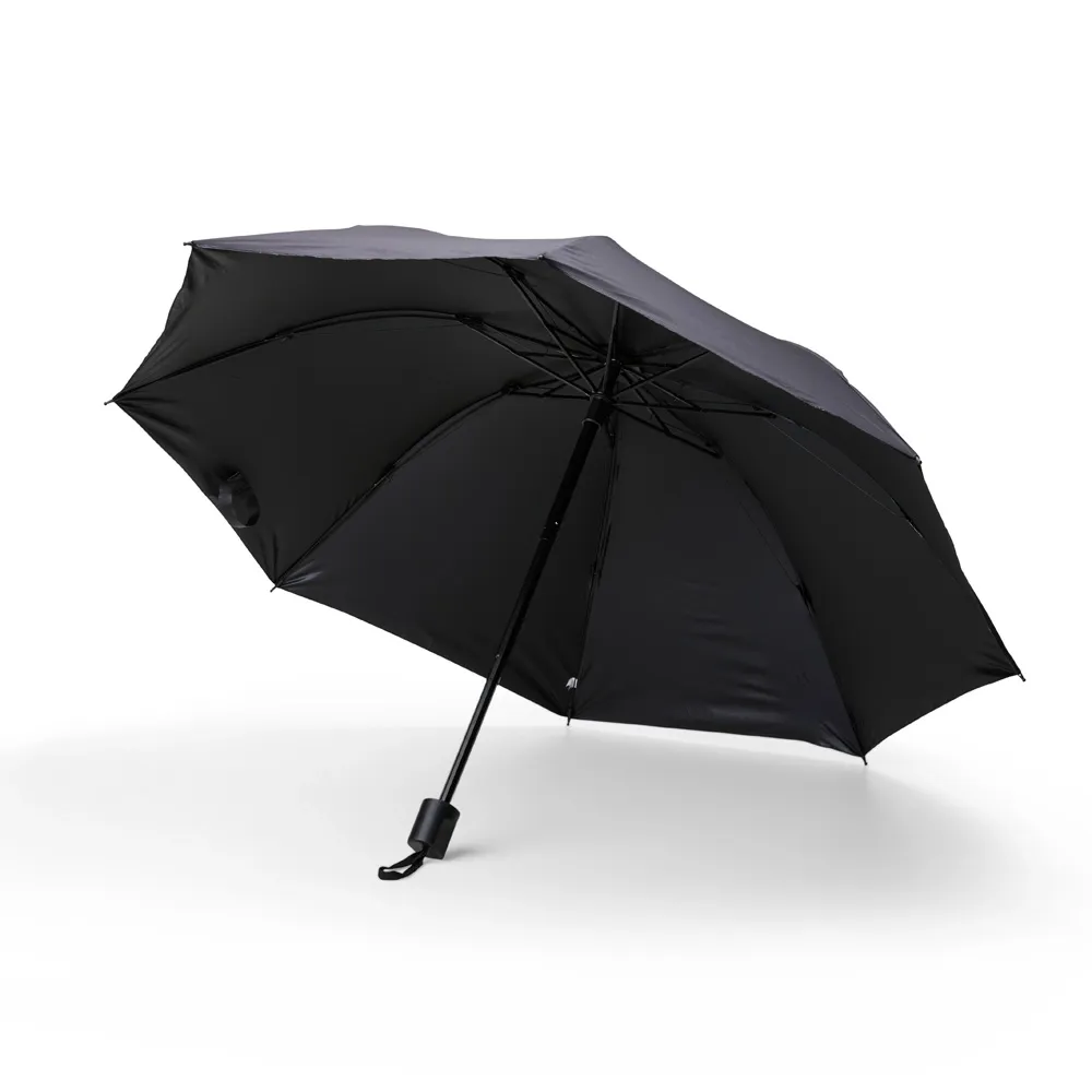 Guarda-chuva manual de tecido em nylon com parte interna em vinil. Possui 8 varetas e estrutura em aço, pegador, botão de abertura e alça de nylon. Acompanha capa protetora.