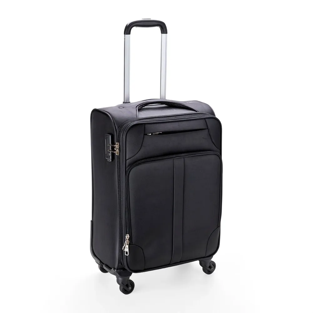 Mala de bordo 47 Litros com padrão ANAC (Agência Nacional de Aviação Civil), confeccionada em poliéster de alta qualidade, com cadeado numérico TSA. Possui etiquetas de identificação embutidas na mala, sendo uma integrada ao cadeado e outra na parte de trás da mala, acoplada por estojo em couro sintético. Três compartimentos, bolso telado, cinta compressora para roupas, alça de mão em poliéster, puxador retrátil com regulagem de tamanho e quatro rodinhas 360º.