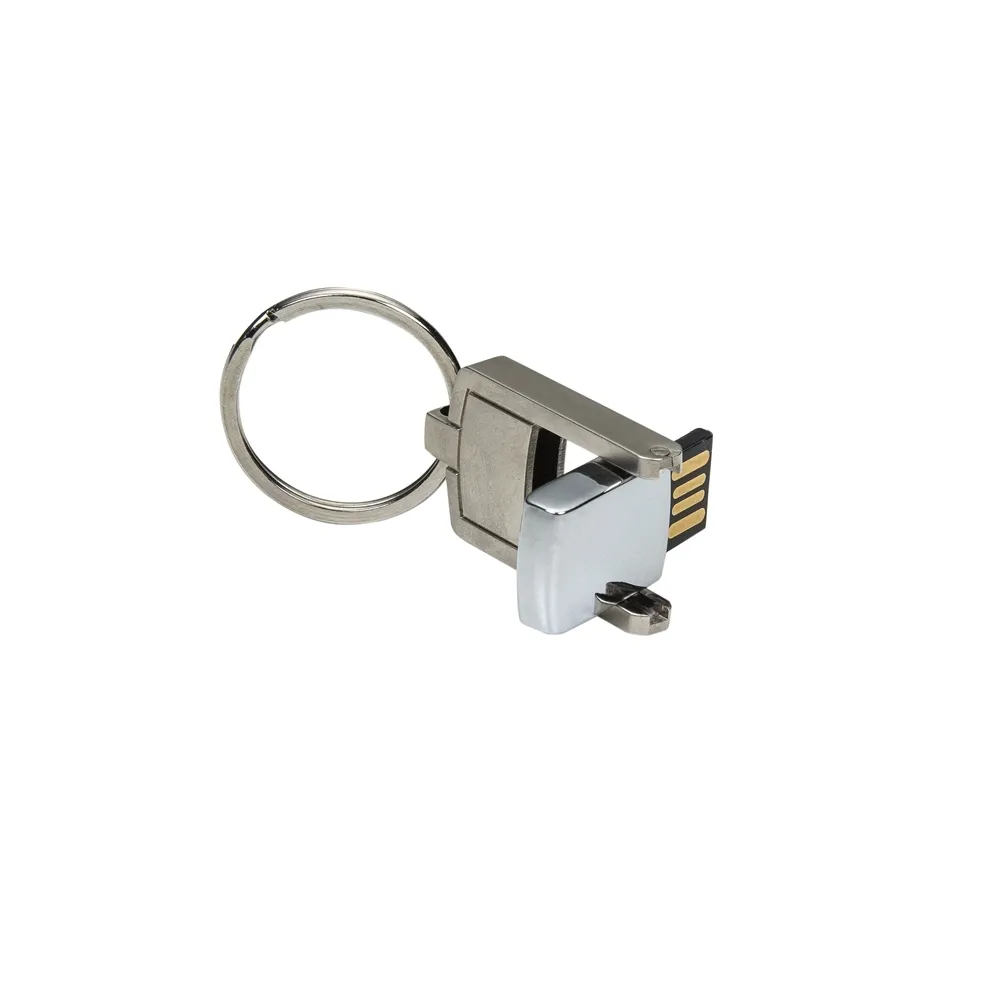 Mini pen drive chaveiro 4GB prata fosco com tampa metal brilhante, acompanha chaveiro.