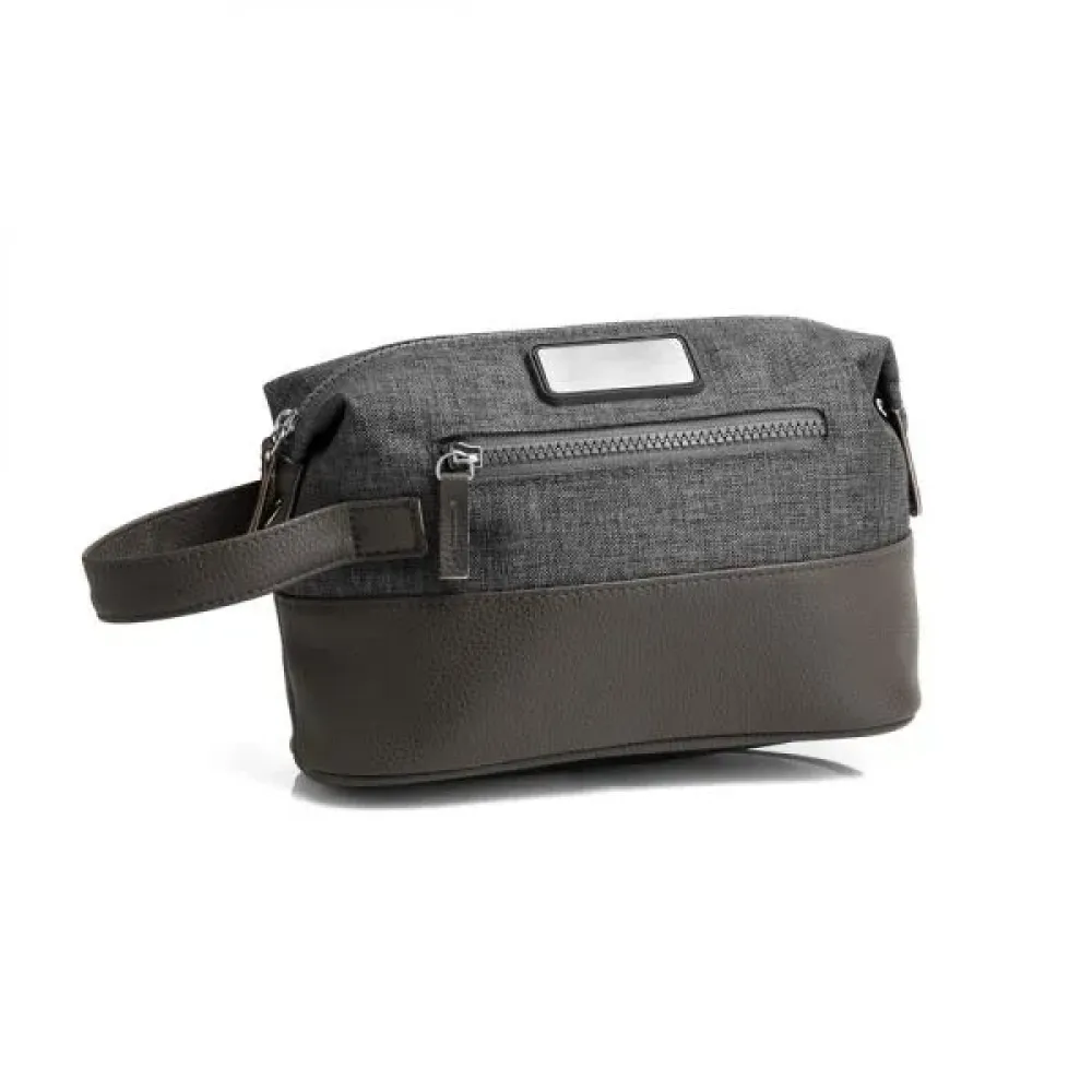 NECESSAIRE EM POLIESTER 300D COM DETALHES EM COURO - CINZA