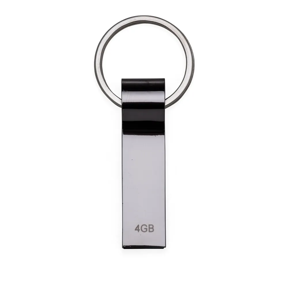 Pen drive metálico de 4GB com pintura grafite espelhado e chaveiro.