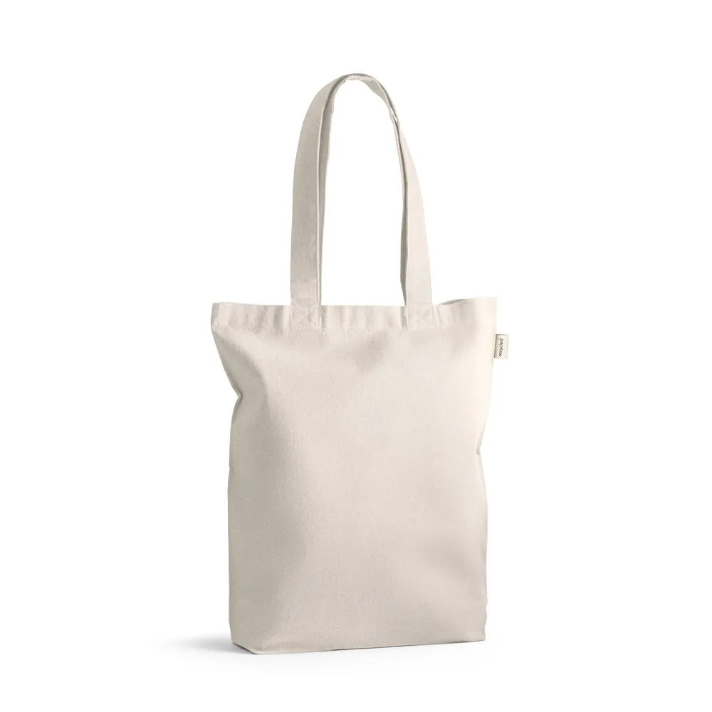 PRAGA. Sacola em 70% algodão reciclado e 30% poliéster reciclado (220g/m²) sem tingimento