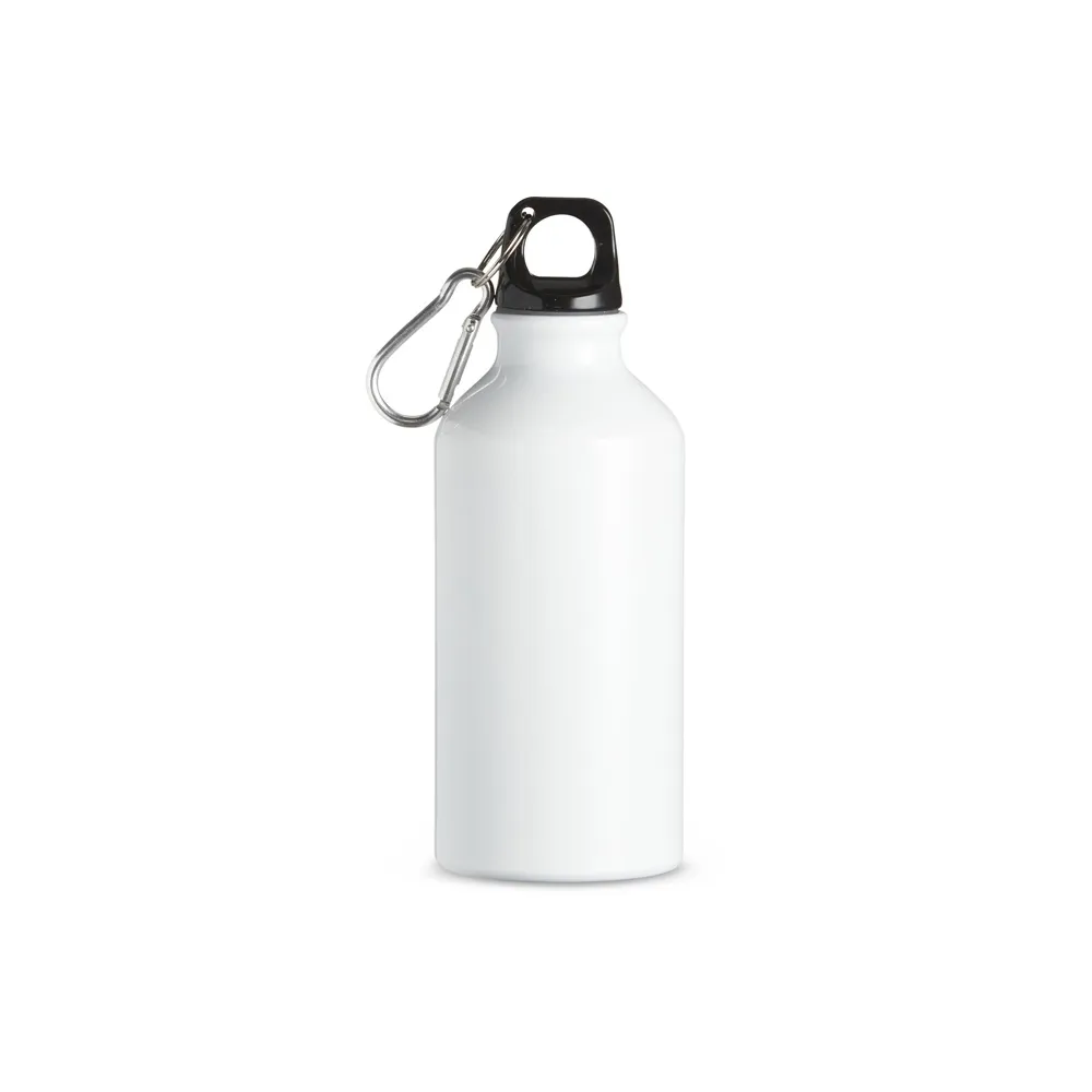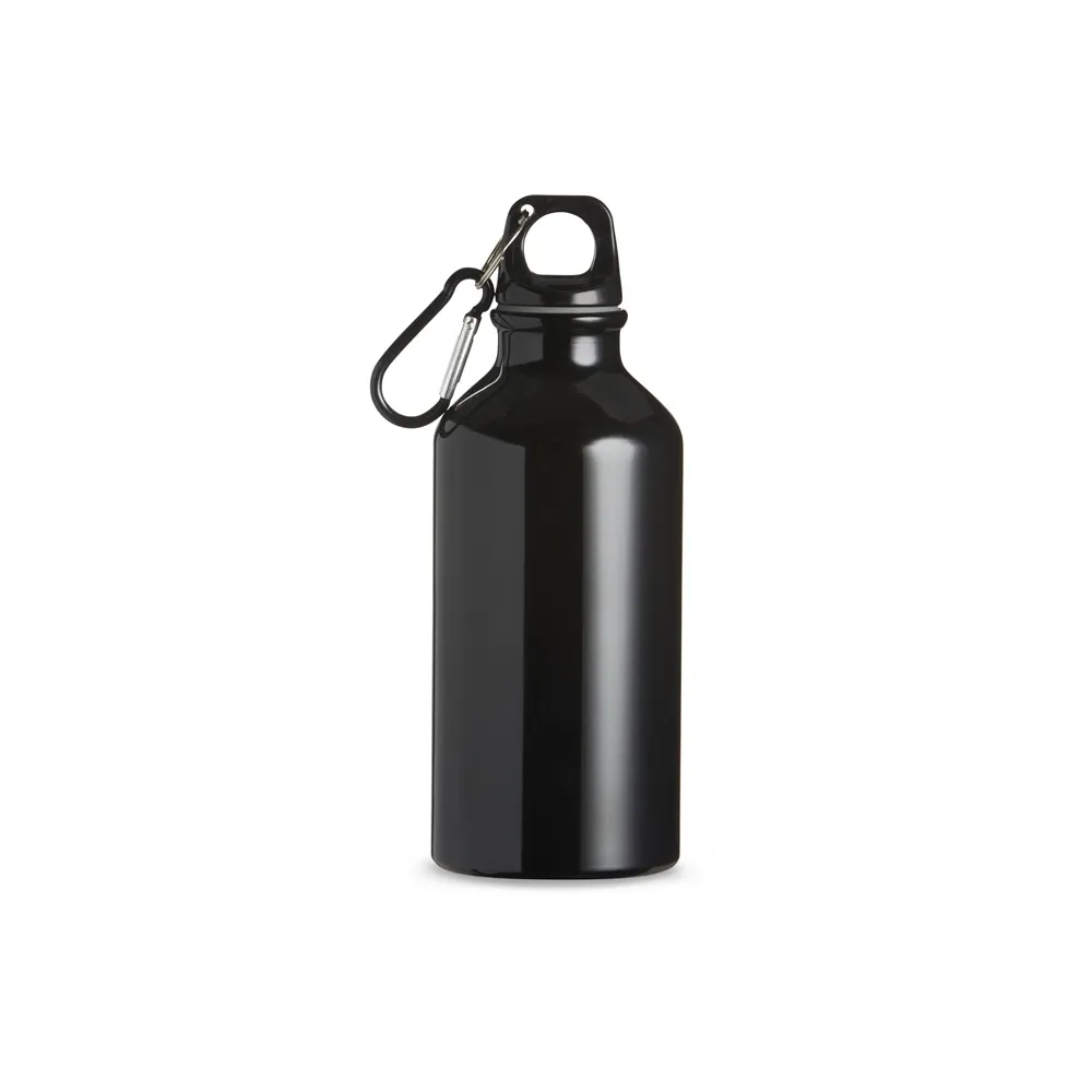 Squeeze de alumínio com capacidade de 420ml com tampa plástica rosqueável. Acompanha mosquetão.