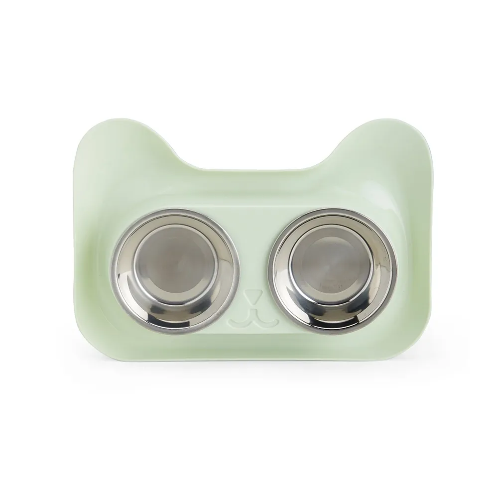 Conjunto de tigela dupla de aço inoxidável 170ml para animais de estimação.