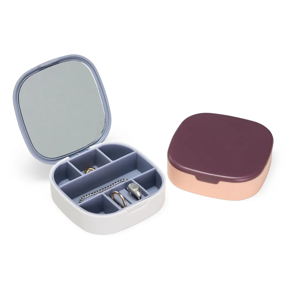 Nosso Porta-jóias organiza seus acessórios de forma prática e compacta. Produzido em plástico, é a escolha ideal para manter anéis, brincos, batom e pulseiras sempre acessíveis. Com 7 compartimentos estratégicos para guardar tudo, feitos em material macio e emborrachado, removíveis para facilitar a limpeza, ele também conta com um espelho na tampa, facilitando na hora de montar looks com as jóias. Perfeito para quem valoriza organização, autocuidado e praticidade no dia a dia.