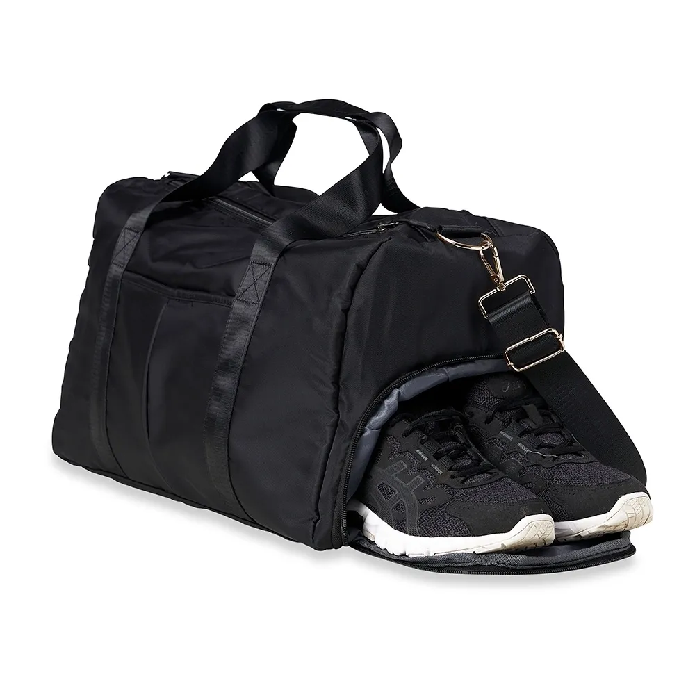 Bolsa esportiva de 36 litros em poliéster resistente à água com cinco compartimentos, sendo dois deles exclusivos para tênis e itens molhados. \r\nContém bolso para encaixe em malas de viagem, bolso interno, alça de mão lateral extra e acompanha alça transversal.
