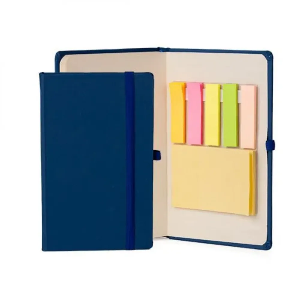 Caderno para anotações com capa dura.\nConta com 80 folhas não pautadas, elástico para fechamento e 150 folhas autocolantes em 5 cores.\nGramatura da folha de 70 g/m2