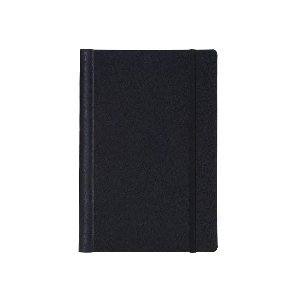 Caderneta emborrachada com wire-o, elástico para lacre e marcador de página em cetim. Possui páginas para dados pessoais, calendário de 2024 à 2026, página de contatos e aproximadamente 100 páginas em marfim com pauta.
