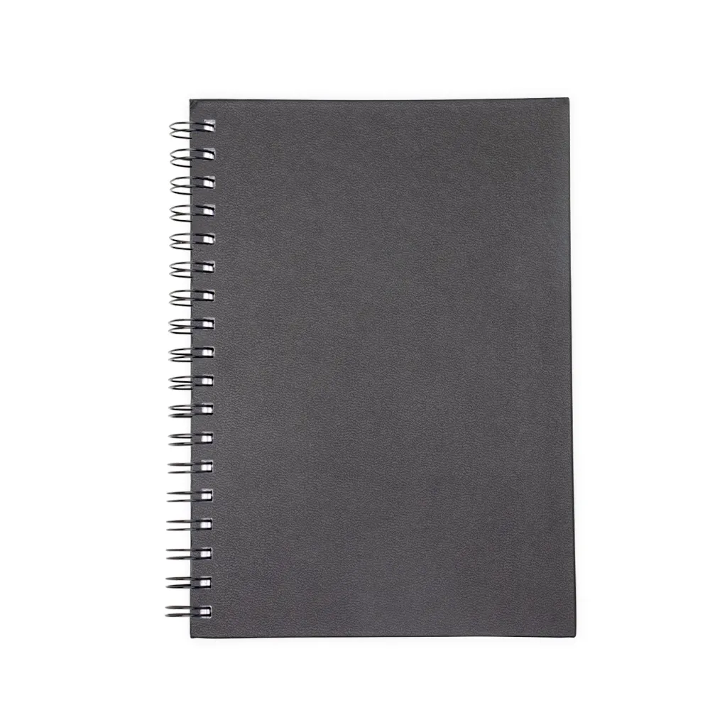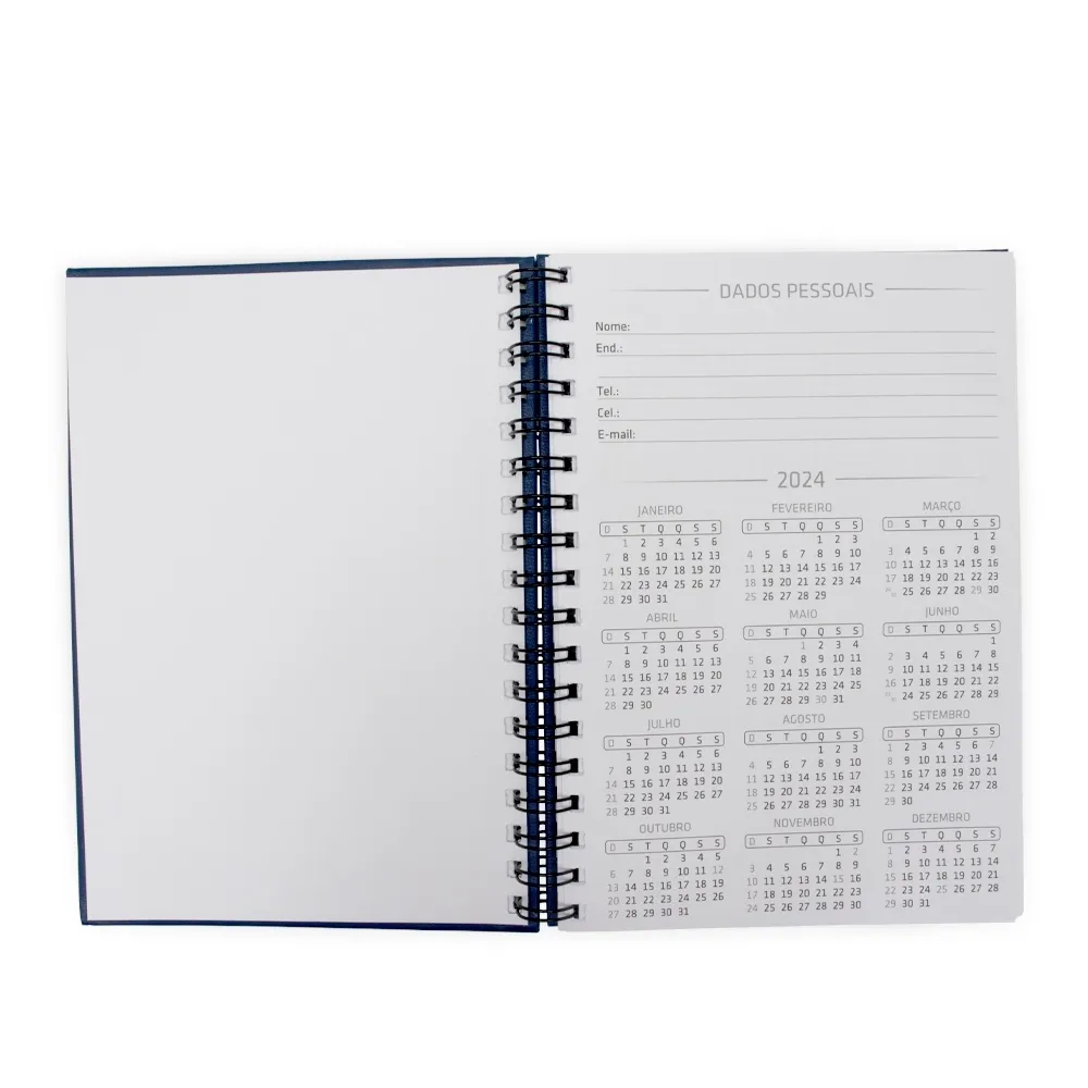 Caderno com capa em cromato e wire-o metálico. Possui aproximadamente 86 folhas pautadas e páginas para: dados pessoais, calendários de 2025 à 2027, planejamentos e endereços de contatos.