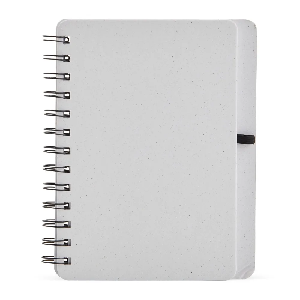 Caderno B6 capa dura em kraft com wire-o e porta caneta. Contém aproximadamente 70 páginas pautadas na cor branca.
