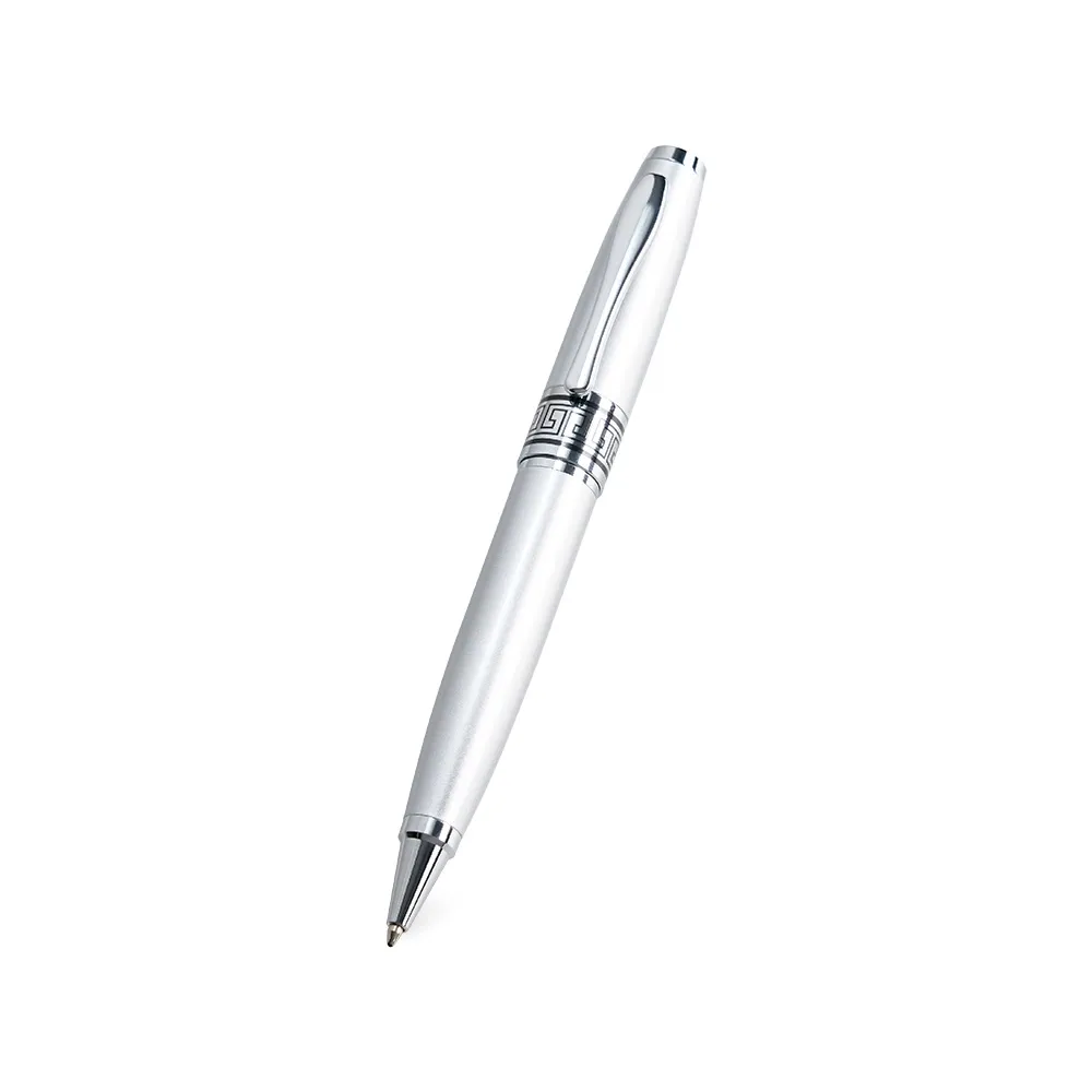 Caneta metálica, acionamento por rotação e carga esferográfica azul 1.0mm.