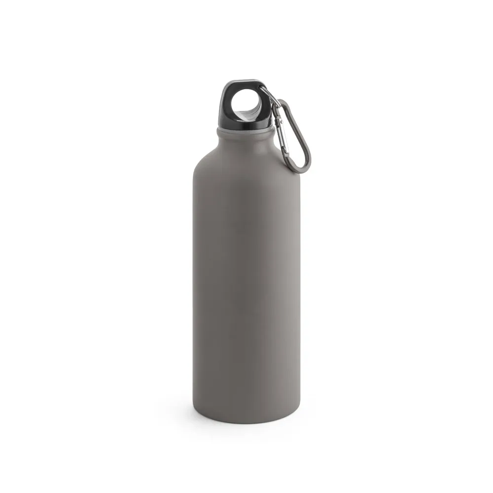 Squeeze em alumínio com acabamento mate e mosquetão para facilitar o transporte. Capacidade até 540 mL. Caixa branca 94650 vendida opcionalmente. Certificação EU Food Grade. ø66 x 216 mm