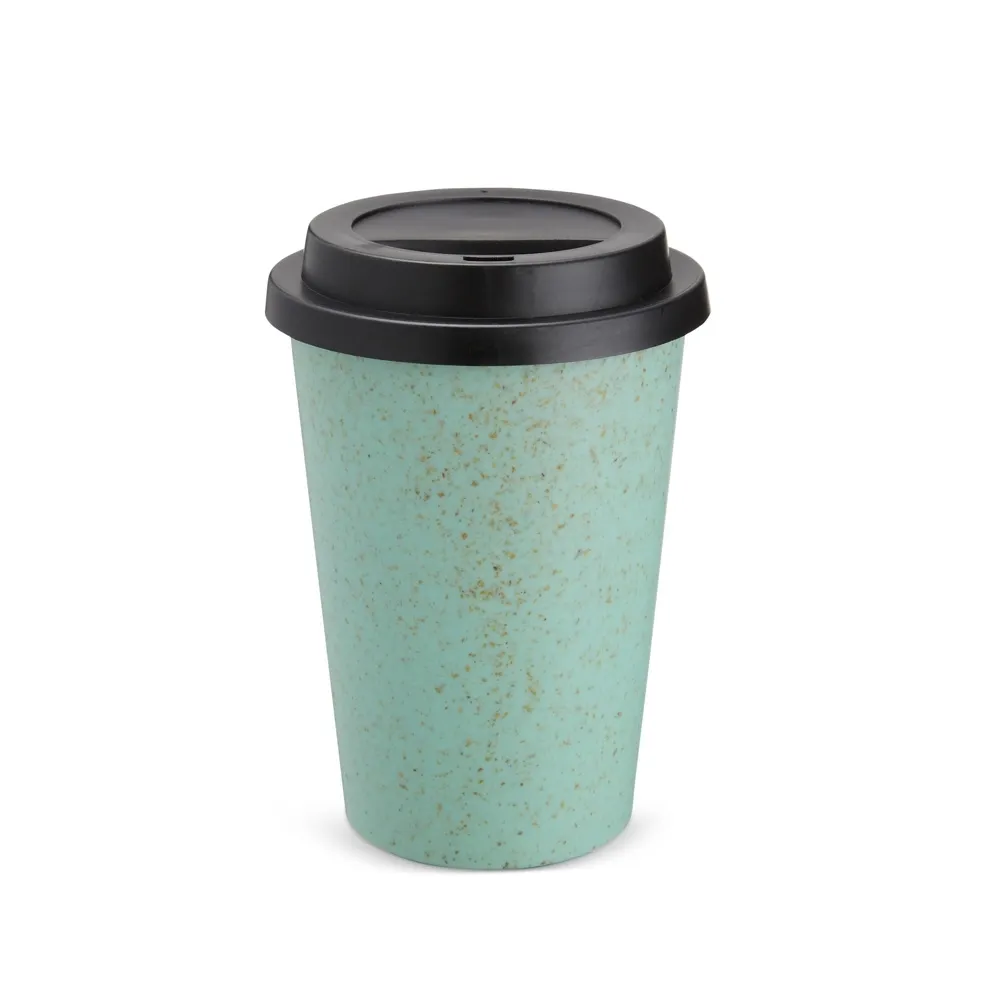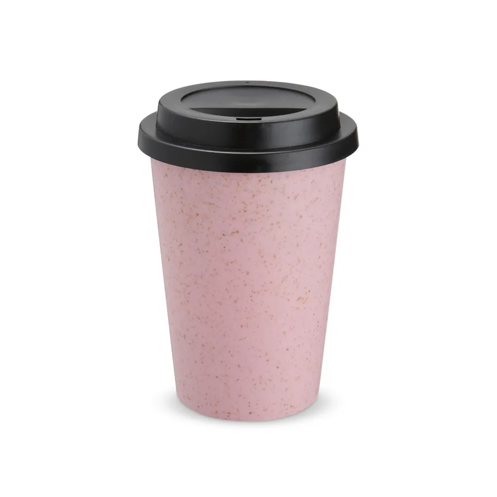 Copo fibra de arroz e polipropileno com capacidade de 450ml livre de BPA, possui tampa com bocal.