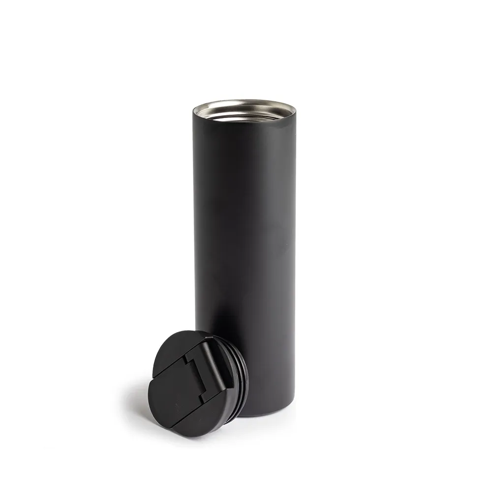 Copo parede dupla de inox, com capacidade para 500ml. Contém base de EVA antiderrapante, tampa plástica com bocal e trava de segurança.