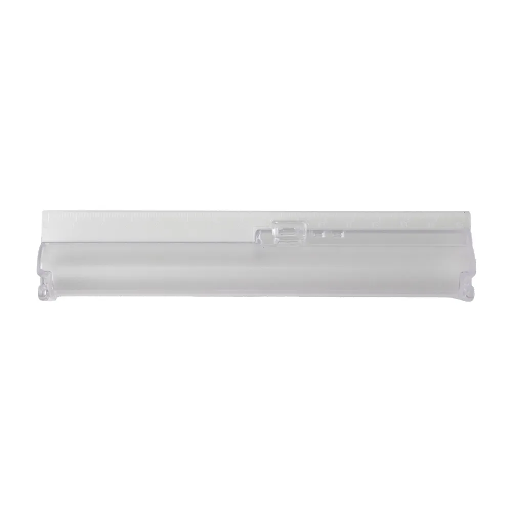 Estojo de plástico com régua de 15cm e compartimento para uma caneta. Não acompanha caneta.