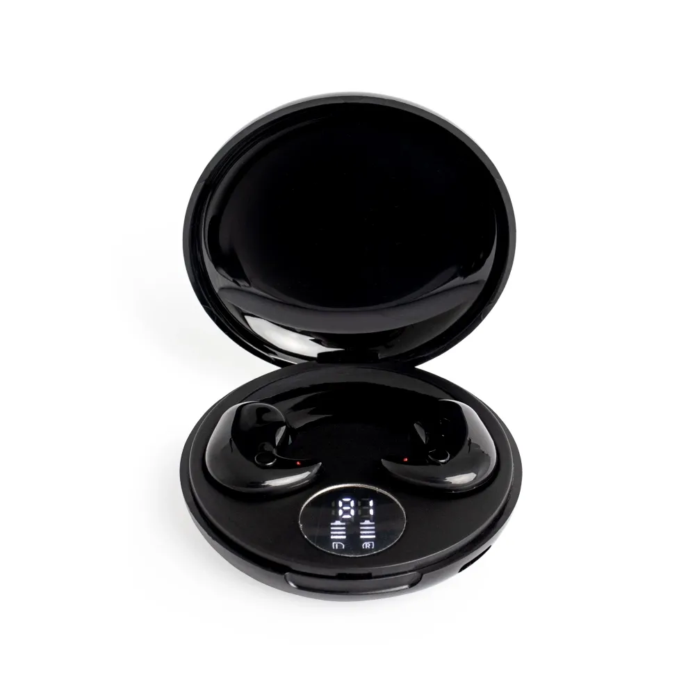 Fone de ouvido bluetooth vem com um botão para comandos e um case carregador com display de bateria. Também possui um modo sono, onde funciona por 45 minutos antes de desligar automaticamente. Acompanha USB Tipo-C, cordão de silicone e 2 pares de eartips em diferentes tamanhos.