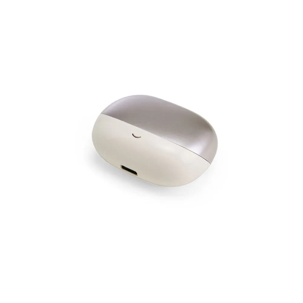 Fones de ouvido sem fio com conexão via Bluetooth e estrutura leve aos ouvidos, tornando-os quase imperceptíveis durante o uso. Possuem tempo estimado de reprodução de até quatro horas e microfone interno para chamadas pelo celular ou WhatsApp. Acompanha estojo de carregamento e cabo USB-C.