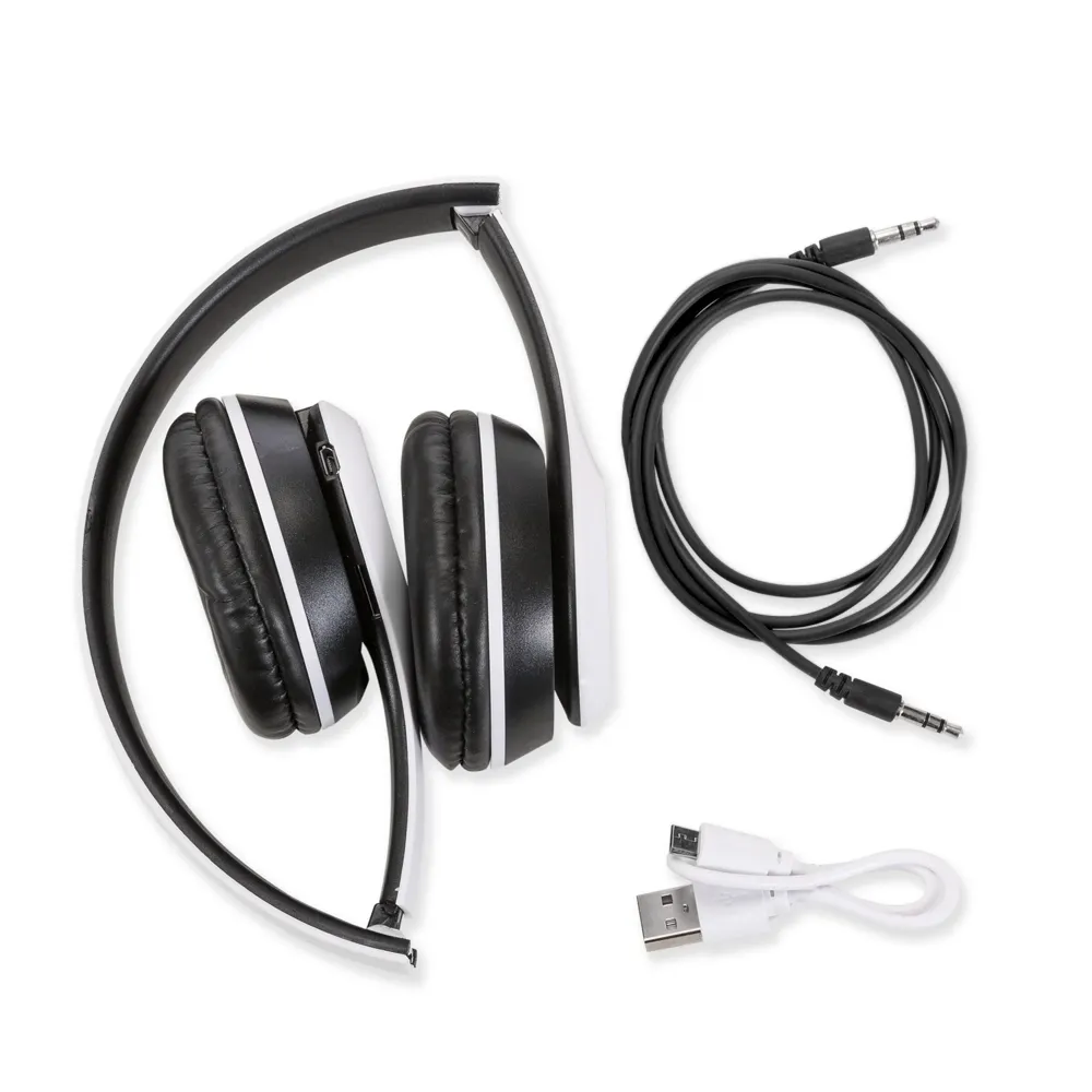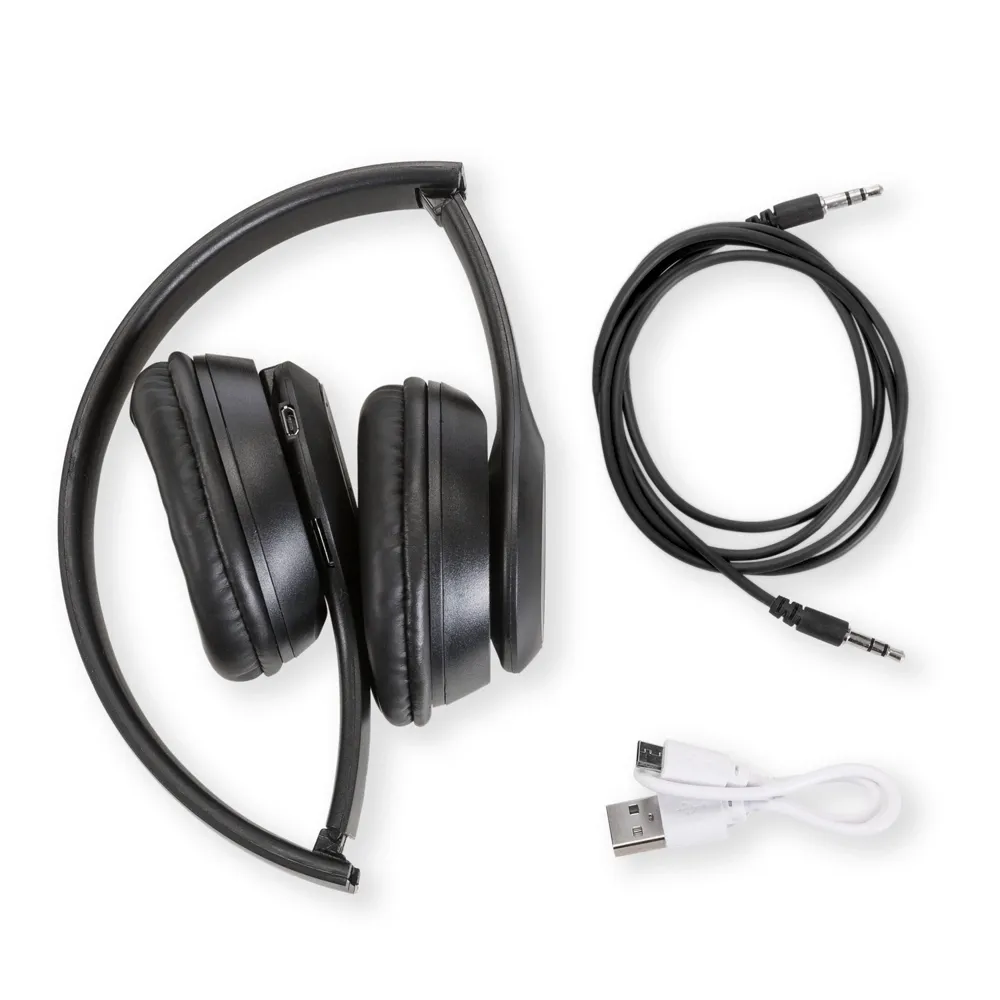Fone de ouvido bluetooth com pintura fosca e rádio FM. Material articulável plástico com hastes de altura regulável e protetor de couro sintético com espuma interna. Botão superior Liga/Desliga: basta segurá-lo para ligar ou desligar; Botão esquerdo > + : ao pressioná-lo irá avançar a faixa ou estação, ao segurar irá aumentar o volume; Botão inferior Modo: ao pressioná-lo alterna entre os modos bluetooth e rádio; Botão central >|| Play/Chamadas: ao pressionar este botão irá iniciar ou pausar uma faixa, no modo rádio pressione para começar a sintonização automática. Quando estiver conectado e receber uma chamada, ao pressioná-lo irá atender a chamada, ao segurá-lo irá recusar a chamada ou pressionando duas vezes irá rediscar. Possui microfone embutido e entrada AUX/P2 e entrada para cartão microSD. Acompanha cabo USB e cabo auxiliar P2(pode ser conectado no computador e aparelhos de aúdio).