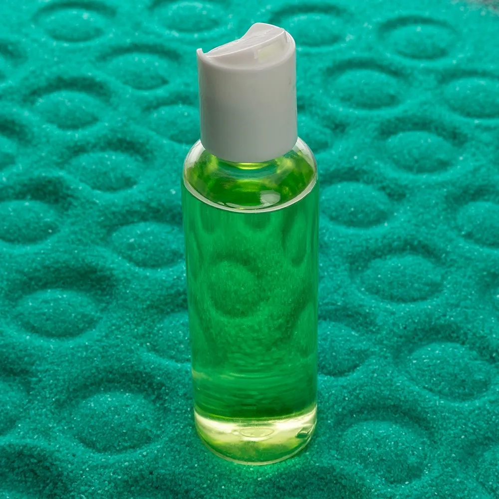 Frasco 60ml produzido em plástico polietileno, tampa rosqueável disk top com detalhe em relevo escrito “PRESS” basta pressioná-lo para utilizar.