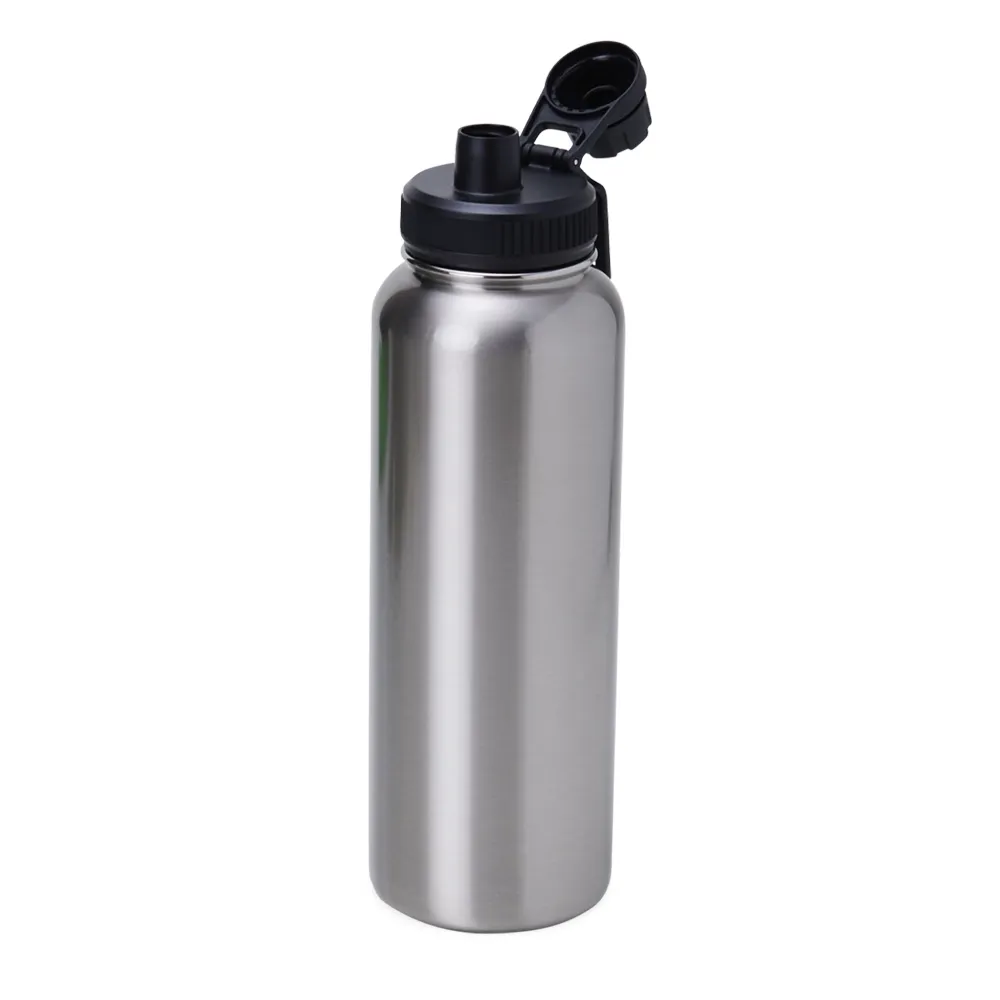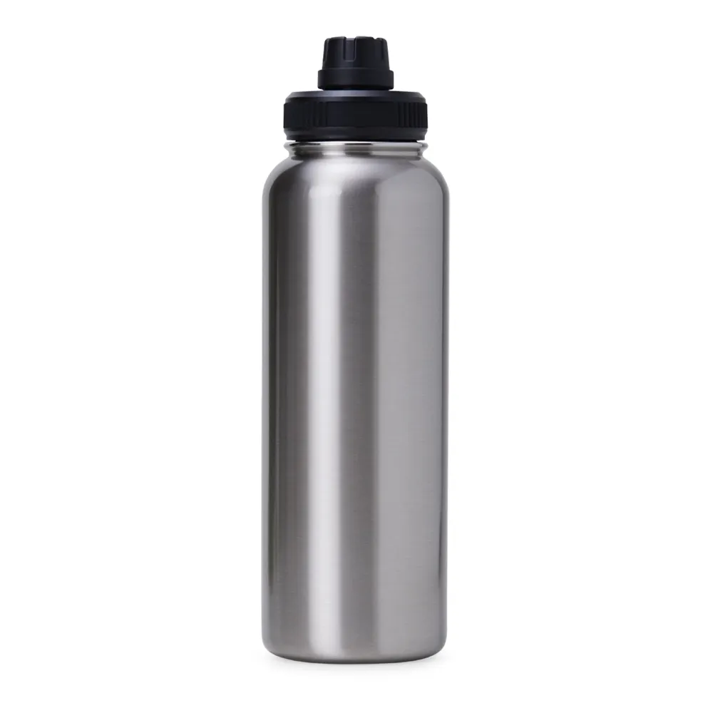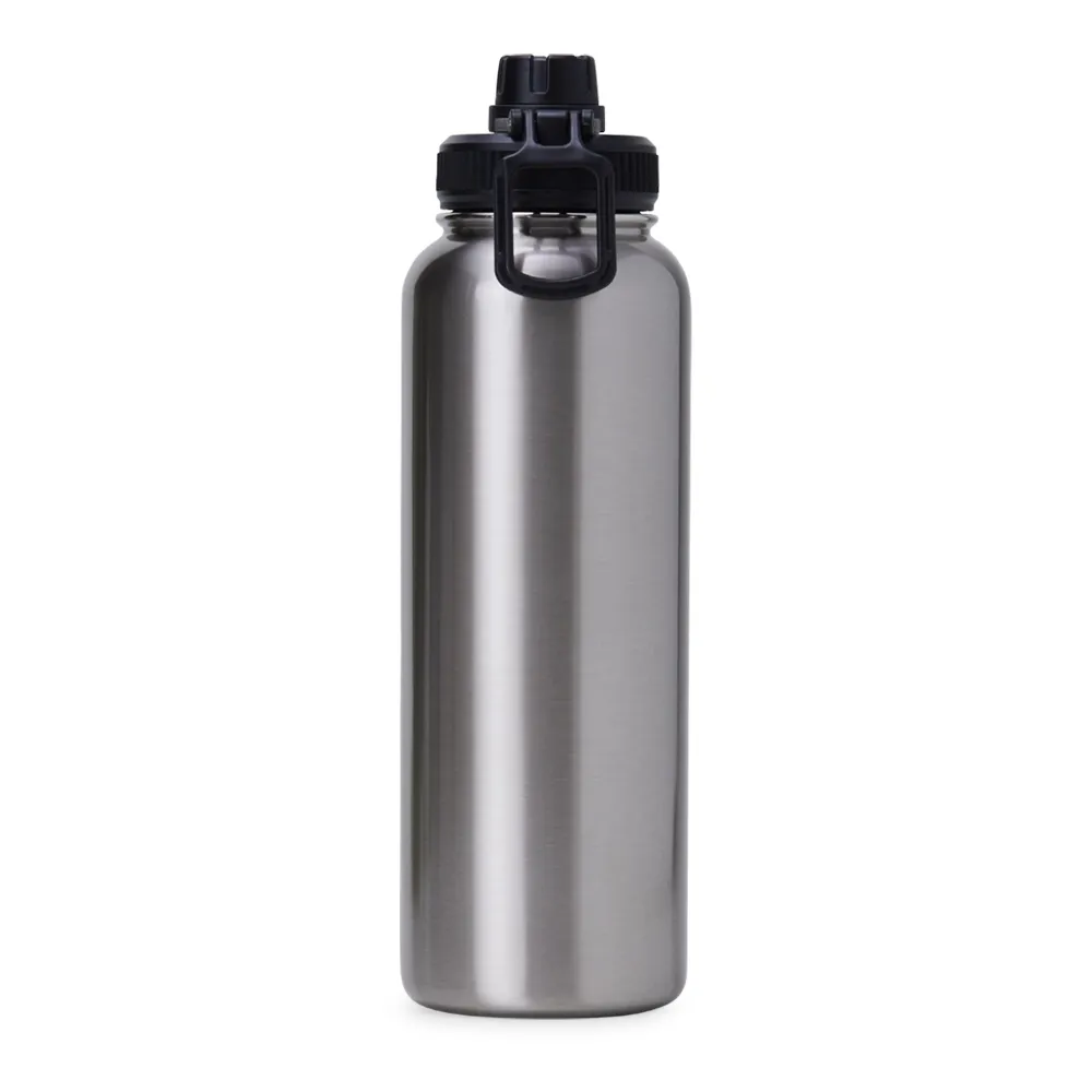 Garrafa térmica feita em inox com parede dupla, capacidade de 1,2 litros. Tampa livre de BPA com alça para transporte e tampa de proteção para o bocal.