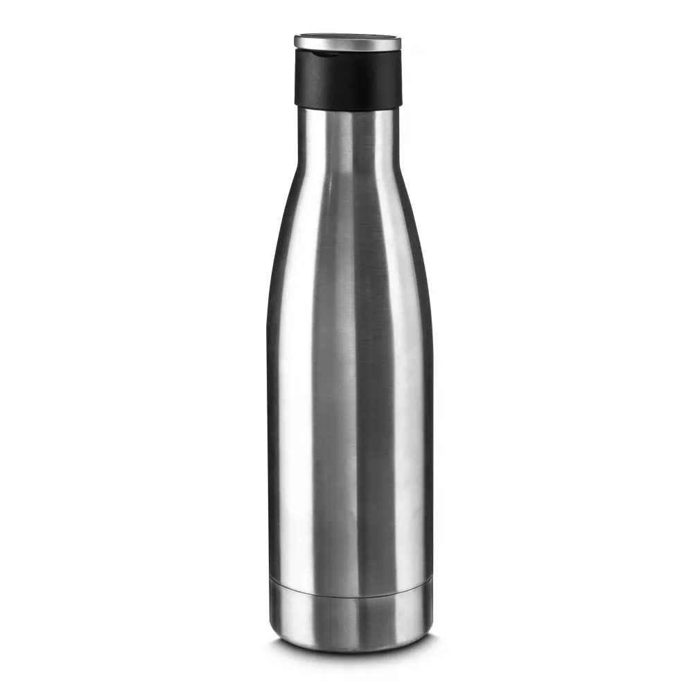 Garrafa térmica em aço inox isolada a vácuo com parede dupla com capacidade de 500ml. Tampa de plástico com alça de transporte de aço inoxidável.\r\n\r\nConserva líquidos : ☀️8 horas ❄️12 horas
