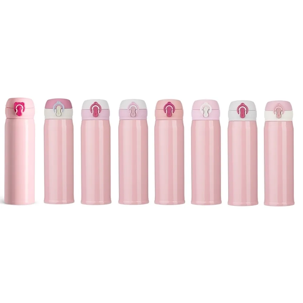 Garrafa térmica de 400ml de inox colorida com botão e válvula para abertura. Possui um sistema de trava (basta mover para cima/baixo para abrir/fechar), pressione o botão central para abrir a tampa(possui na parte interna borracha protetora evitando vazar o líquido). Para abrir a tampa por completo basta rosqueá-la, parte interna revestida em inox. Na embalagem do produto pode ir especificado a capacidade de 450ml ou 500ml devido aos fabricantes que trabalham terem impresso a descrição deste modo, porém ressalvamos a capacidade correta de 400ml.