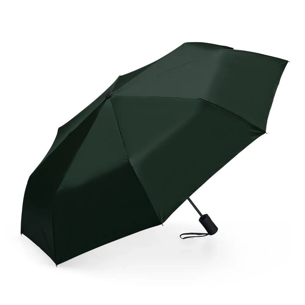 Guarda-chuva automático de nylon com impacto impermeável e proteção UV, tecido interno em vinil. Com estrutura em aço e 8 varetas em fibra de vidro, possui pegador plástico com botão de ação e alça de nylon. Acompanha capa protetora.