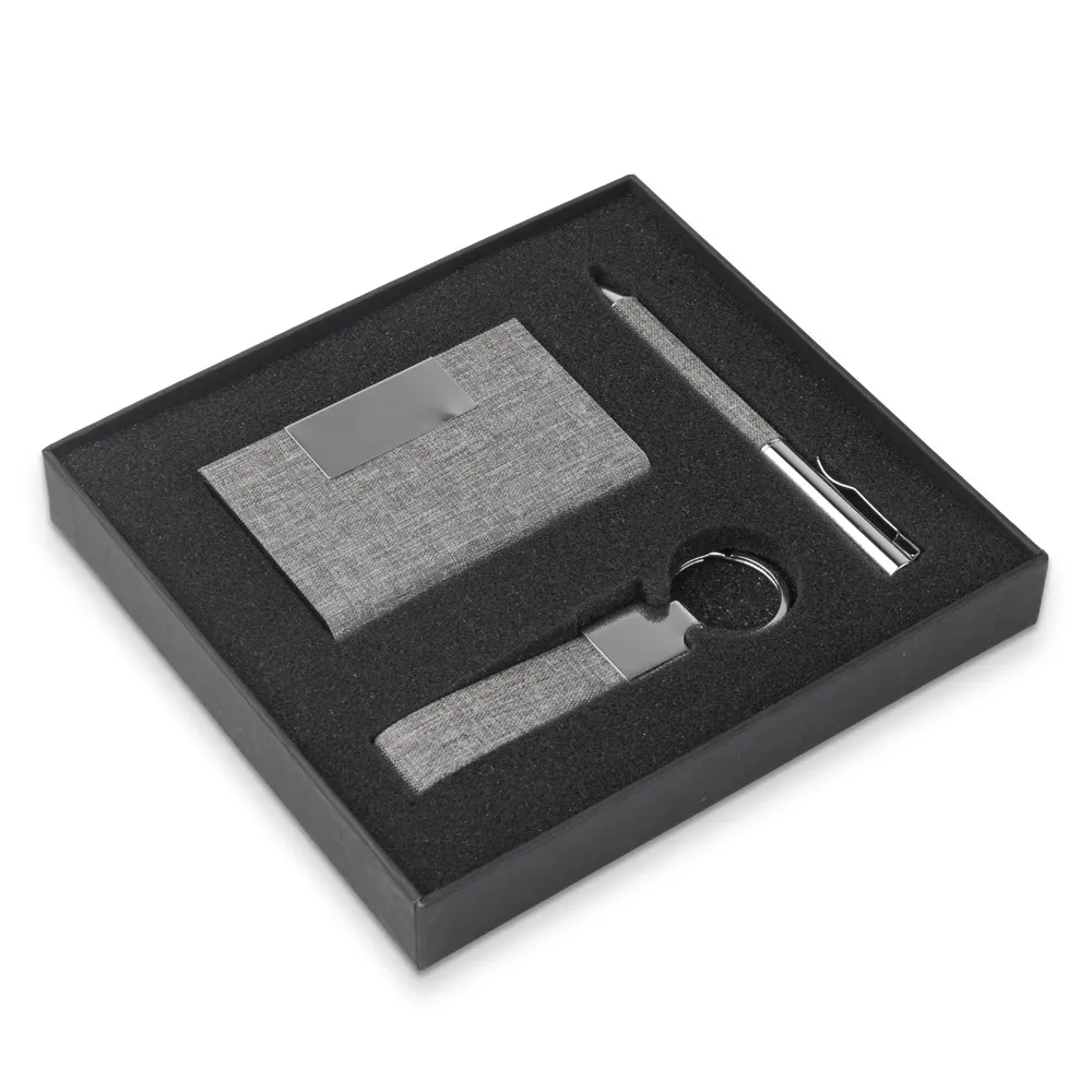 Kit Escritório Porta Cartão, Chaveiro e Caneta Metálica