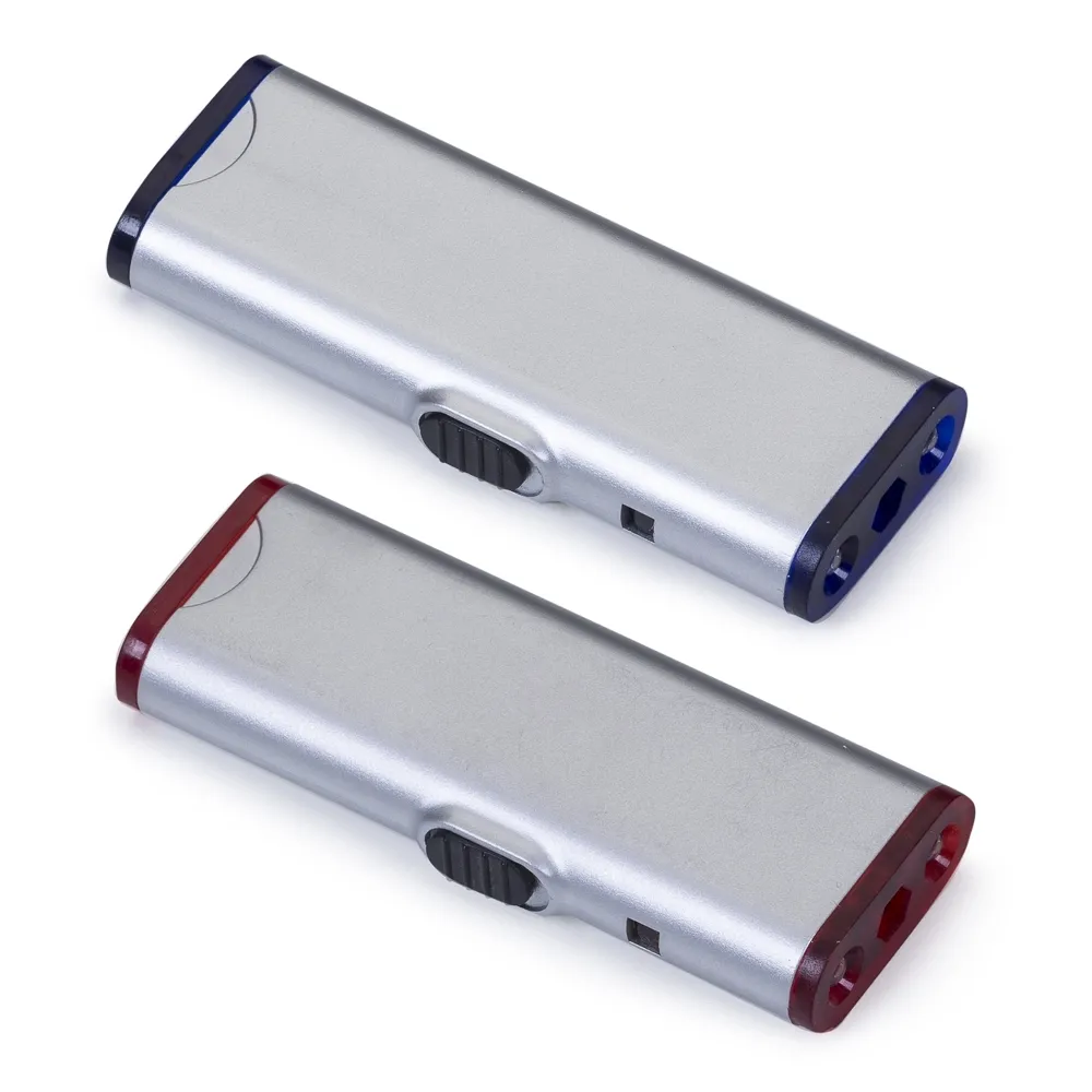 Kit ferramentas com três chaves de pontas duplas: uma em fenda e outra em formato Phillips. Possui estojo com encaixe magnético para as ponteiras de chave e lanterna em LED com chave liga/desliga.