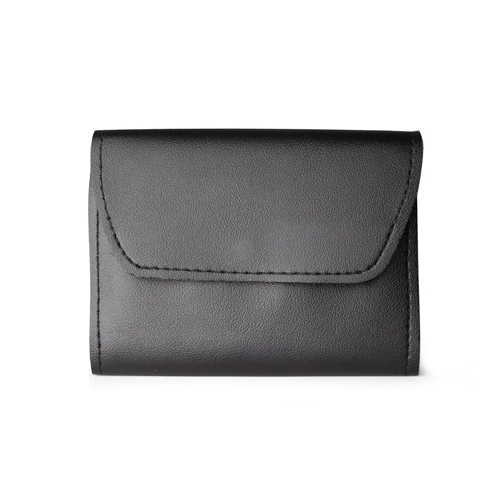 Kit manicure 16 peças em estojo de couro sintético estilo envelope, contém: tesoura, alicate de cutícula, pinça, 3 cortadores de unha, lixa, 2 bisturis, raspador, empurrador de cutícula, removedor de cutícula, espátula dupla para limpeza das unhas, limpador de ouvido, palito de unha e espátula para ouvido.