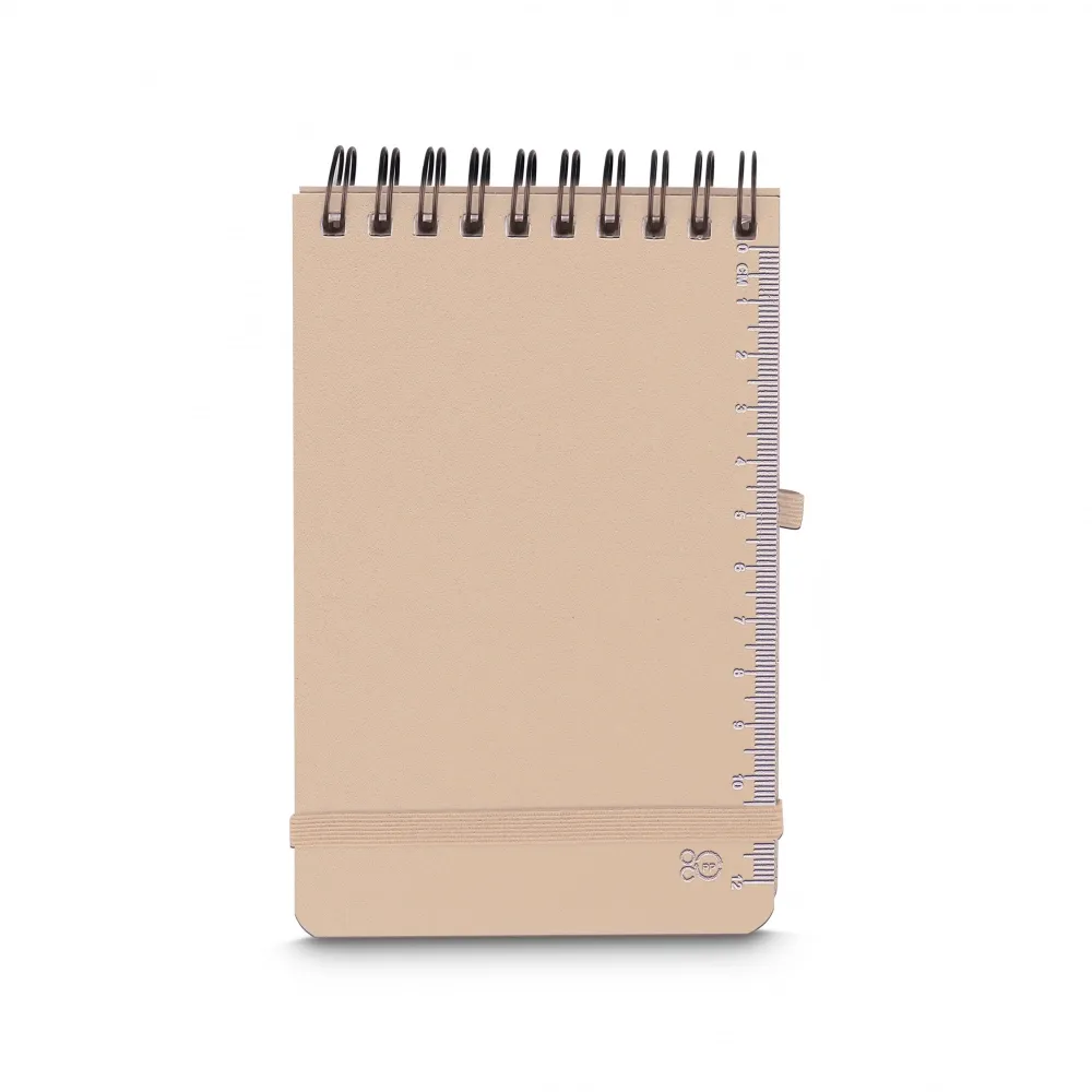 Mini caderno em PP reciclável com suporte para caneta e miolo de 60 folhas branca com pauta.\r\n\r\n*Não acompanha caneta.