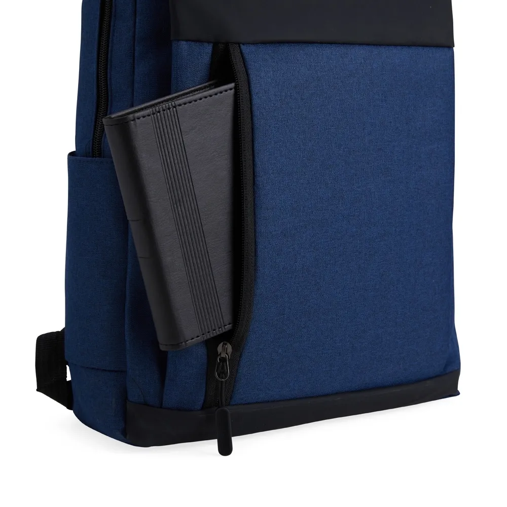 Mochila de nylon 21 litros com detalhes emborrachados e dois compartimentos, sendo o principal com bolso para notebook 15,6. Com divisórias internas para acessórios, a mochila possui bolso lateral e suporte externo usb.