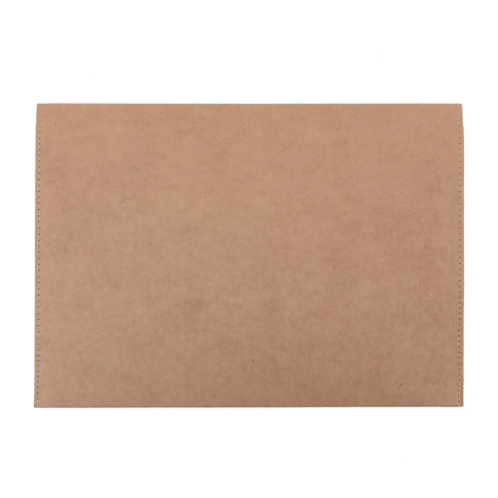 Pasta envelope ecológica, possui abertura superior fixada por um botão imantado. Detalhes costurados nas laterais, material em kraft.