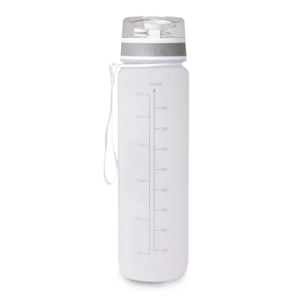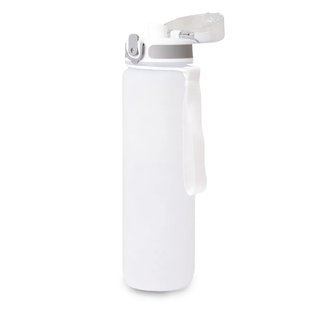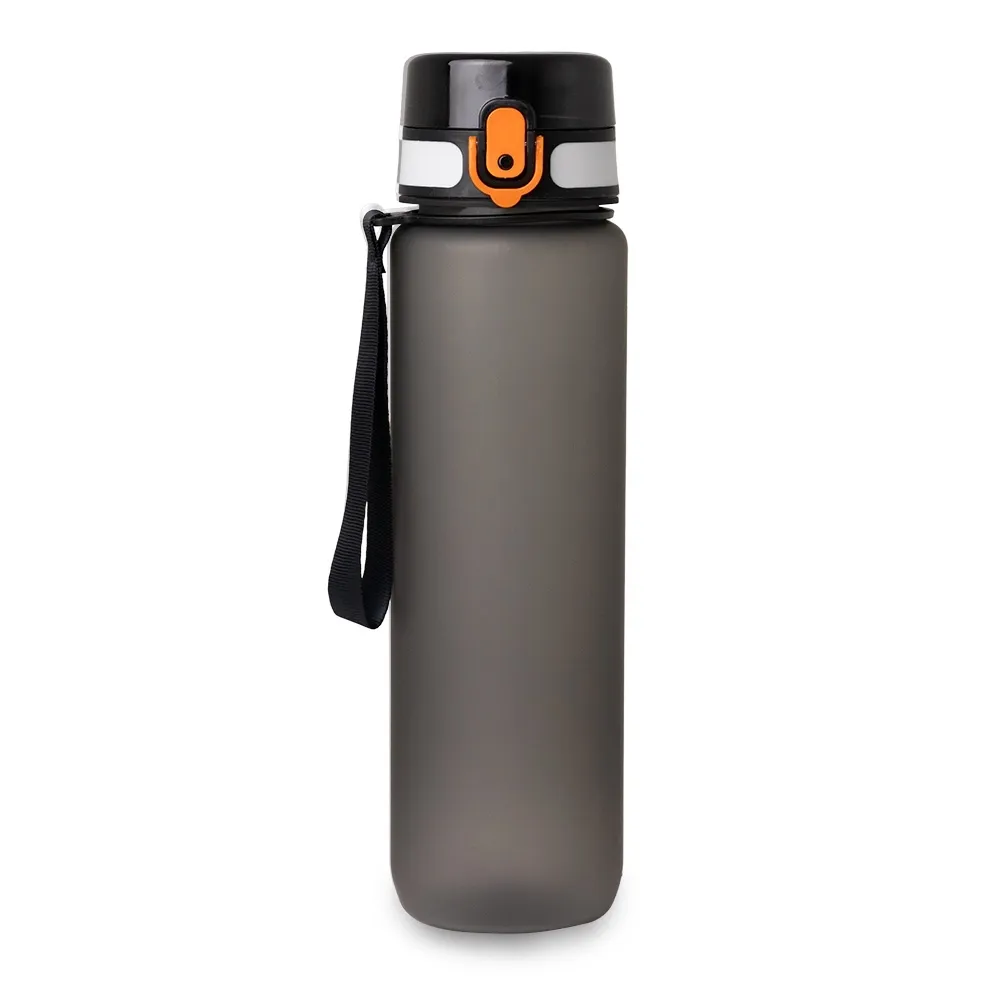 Squeeze plástico com capacidade de 1 Litro, possui tampa rosqueável com botão de acionamento, trava de segurança e alça para transporte.