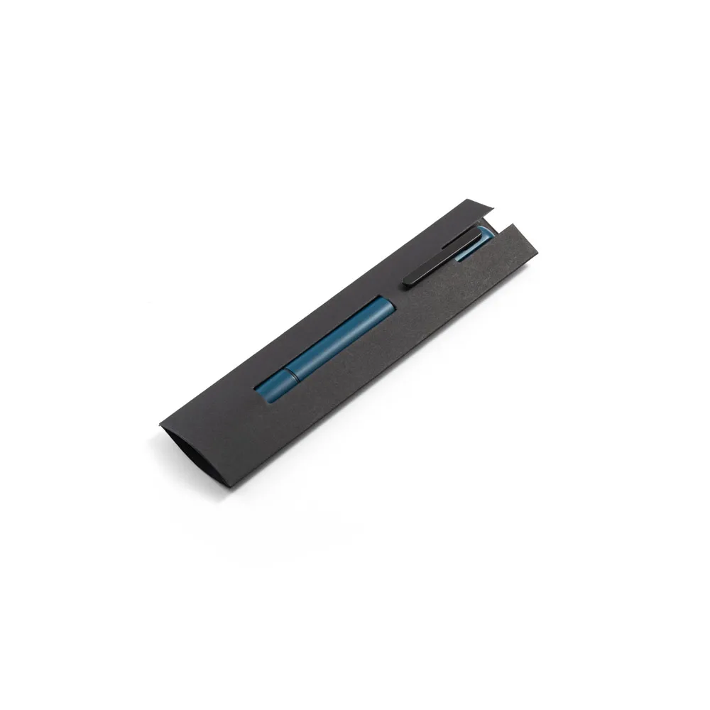 Esferográfica em alumínio 94% reciclado, com escrita em azul até 1.5 km. Quando personalizado no clipe permite que, ao ser rodado, ilumine o seu logotipo ou personalização. Fornecida em bolsa de oferta. ø12 x 140 mm